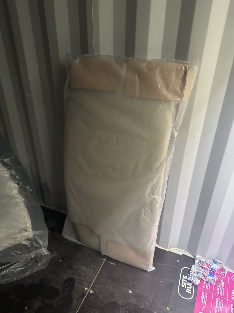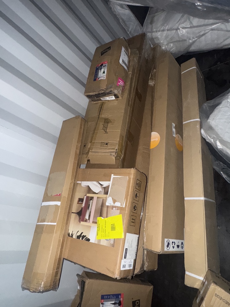 The contents of this storage container are now available for sale, offering a practical mix of useful household items. Included are several mattresses in good usable condition, ideal for spare rooms or everyday use. A television is also included, providing a great opportunity for an affordable upgrade or secondary screen. There is a sturdy headboard suitable for most bedroom setups, adding style and support. Alongside these items are various boxed goods, offering unknown but potentially valuable household essentials.