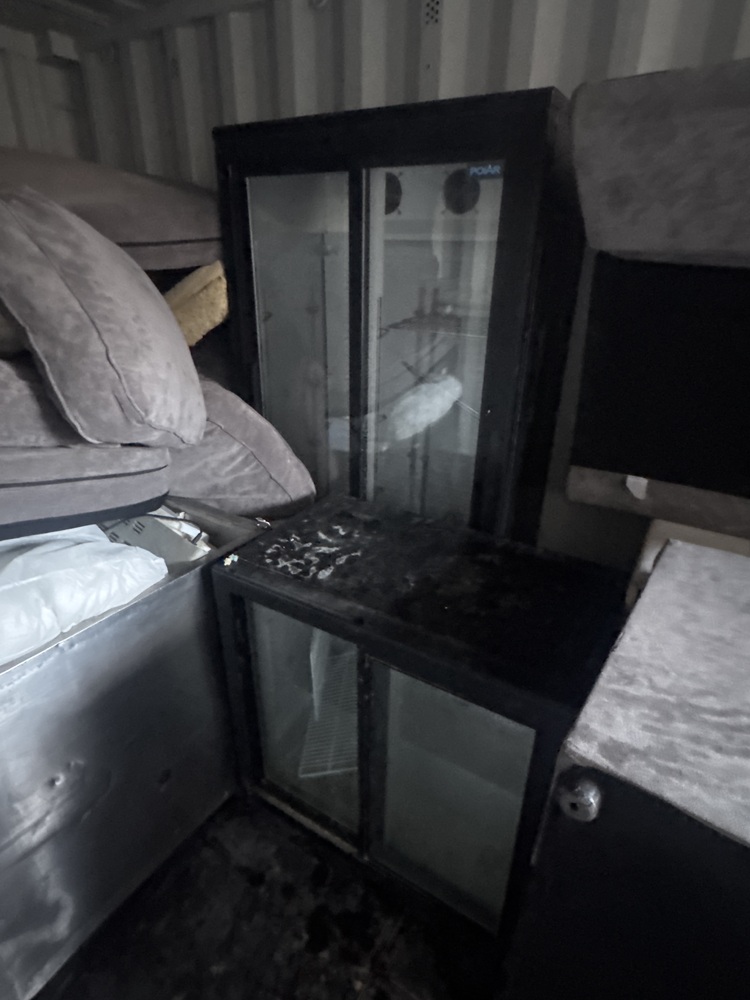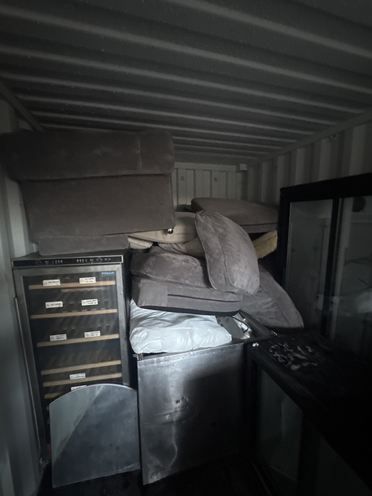 Selling the contents of a storage container, featuring a selection of quality household and commercial items. Included are two stylish corner settees—one in grey and one in cream—both offering modern comfort and versatile seating for any living space. Also available are three practical refrigeration units: a full-size shop fridge ideal for retail or catering use, a wine bottle fridge perfect for keeping beverages chilled and displayed, and a compact under-counter fridge suitable for kitchens, bars, or small businesses.