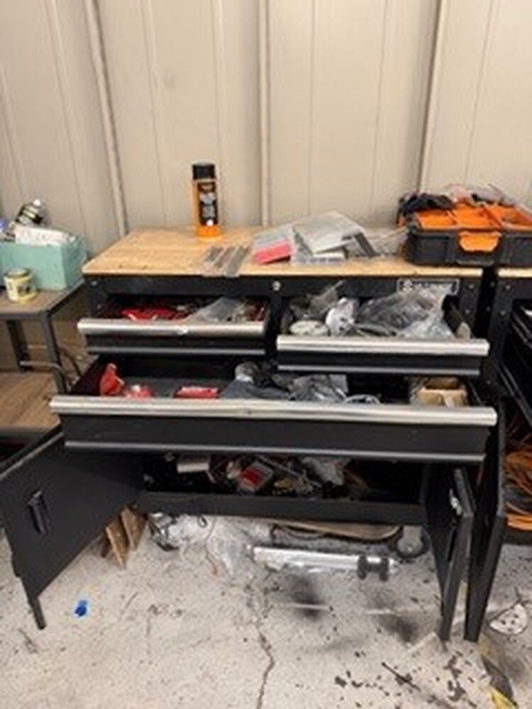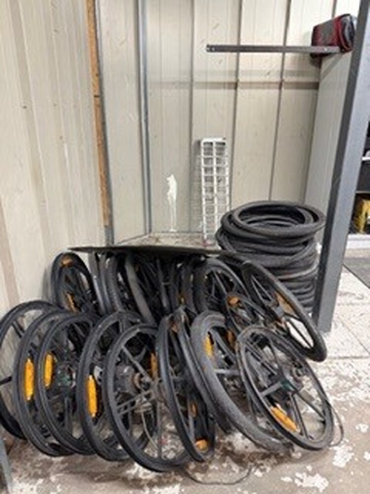 Approx 15 tyres and rubber tubes,5 cabinets,HP printer