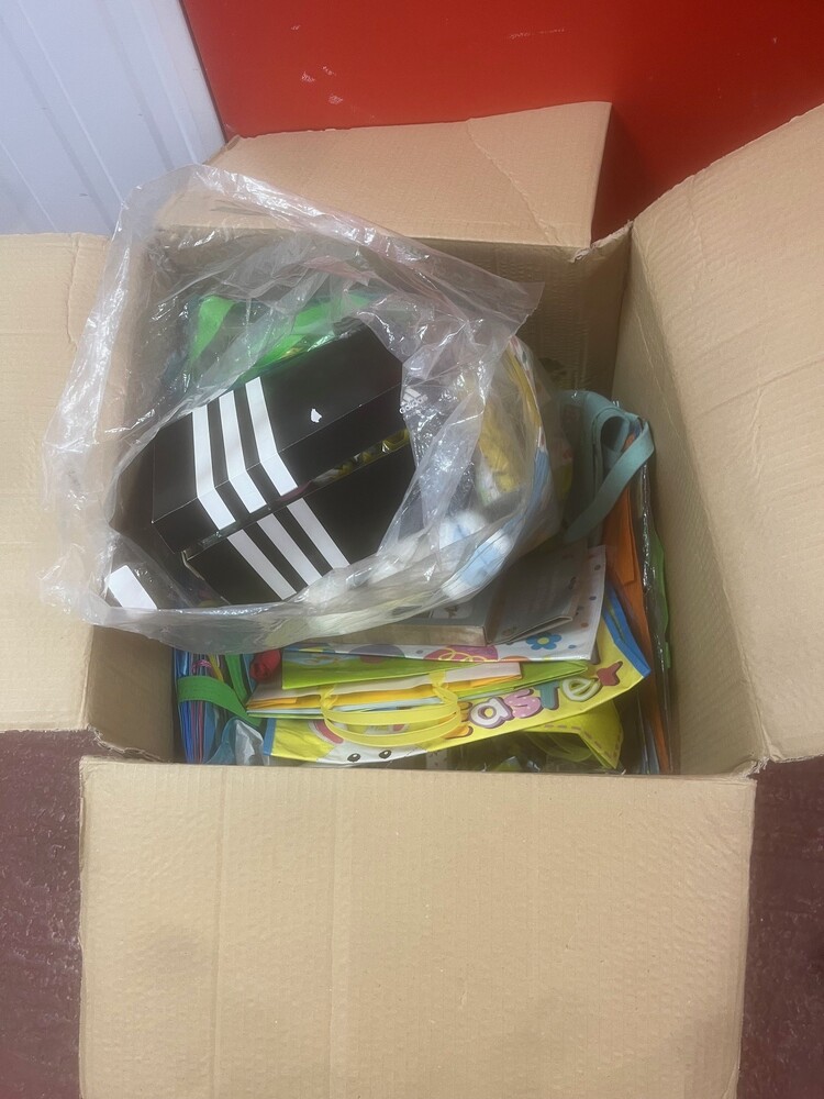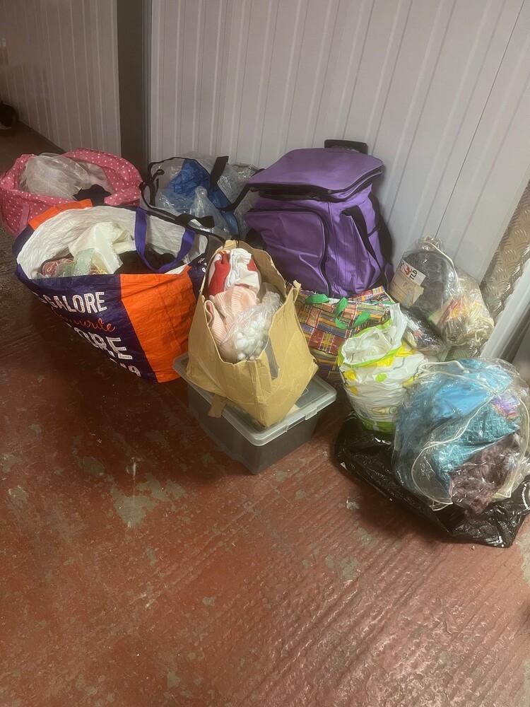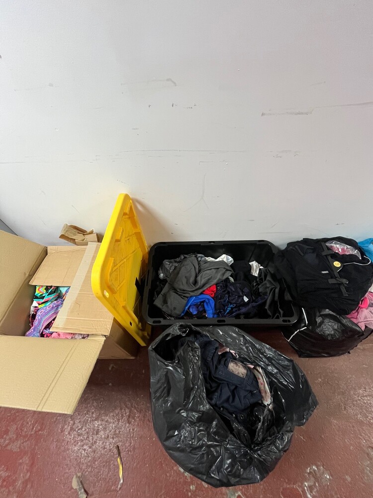 boxes and bags of clothes