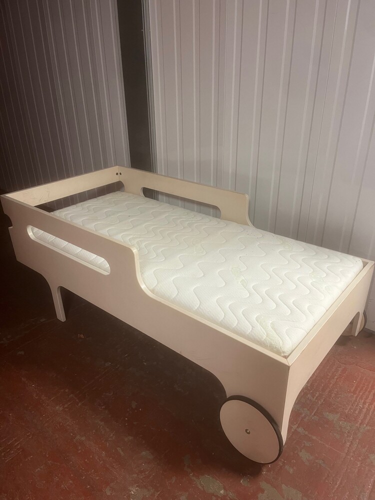 Kids bed on wheels and mattress