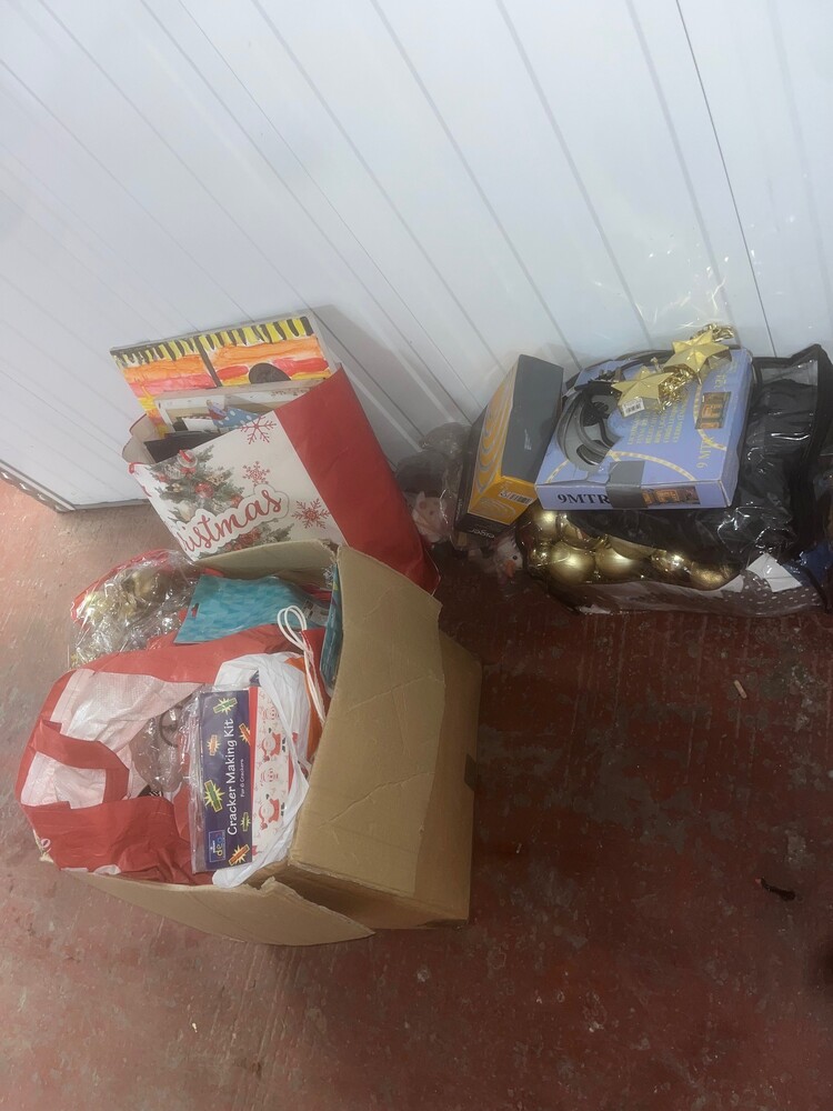 boxes and bags of decorations