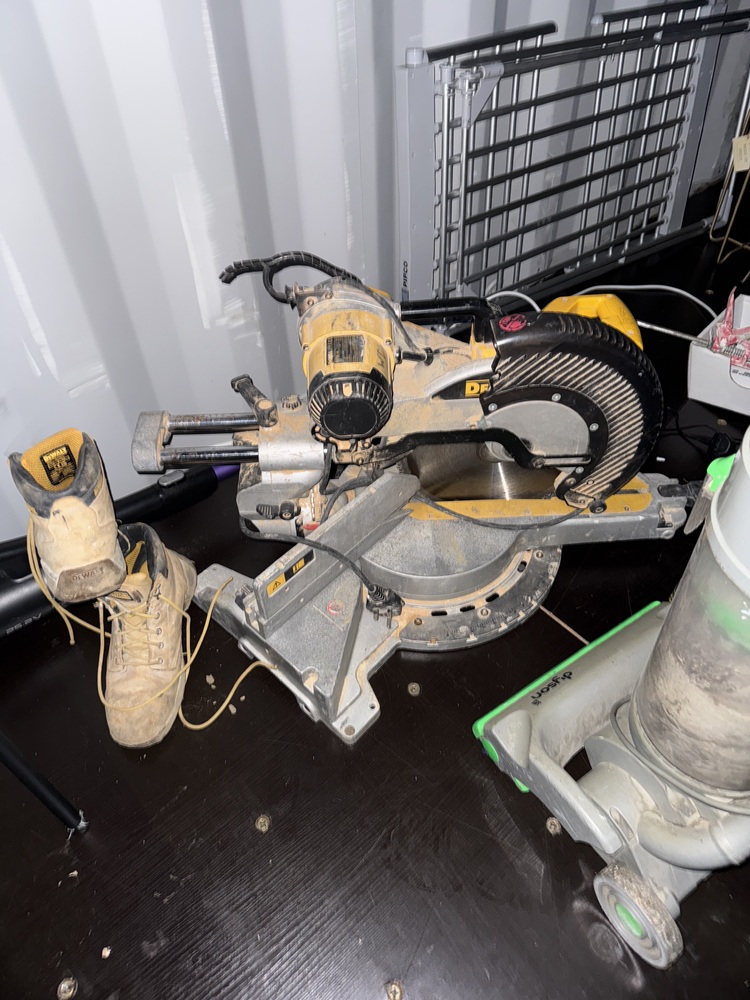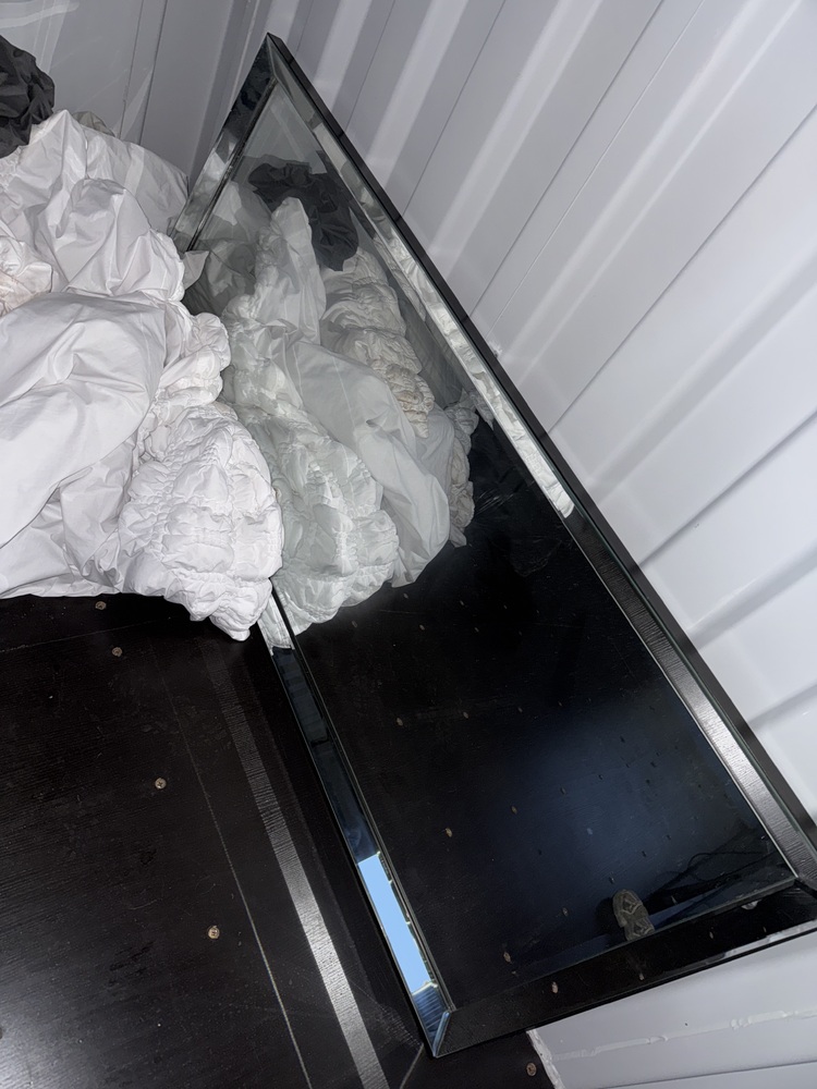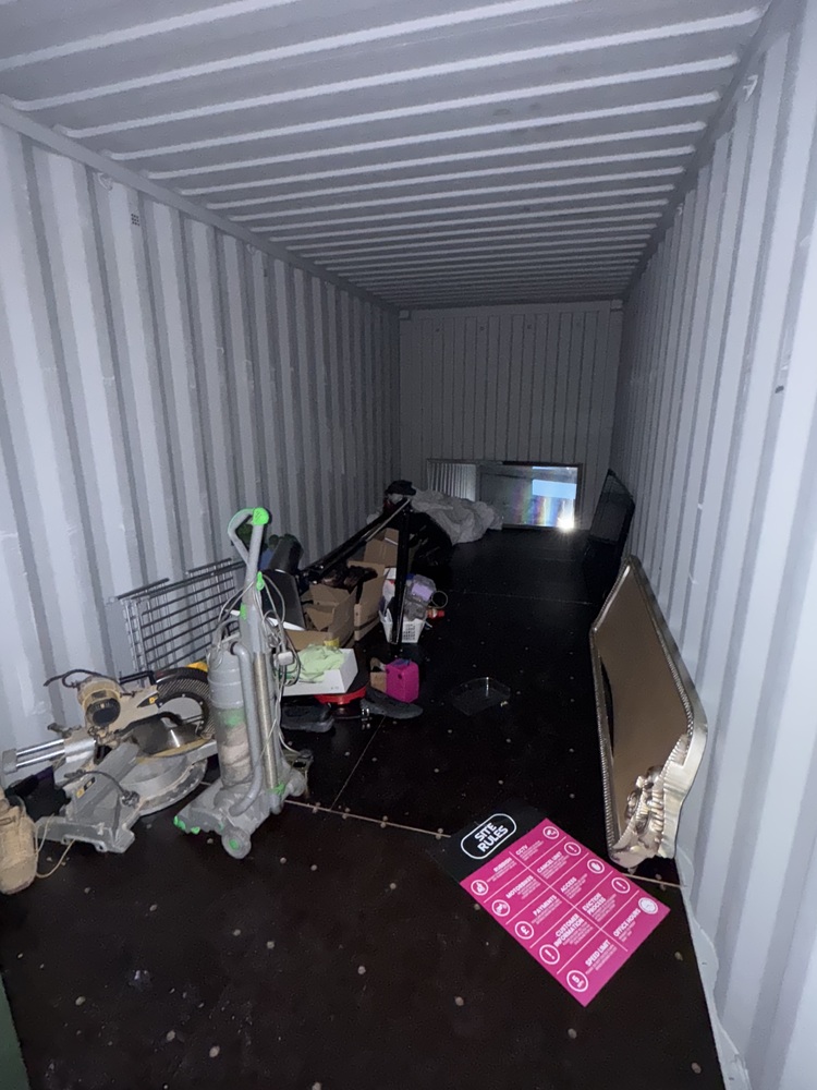 Auctioning the mixed contents of a compact storage container, featuring a selection of practical and desirable items. Included is a large mirror, ideal for home décor, retail spaces, or refurbishment projects. A chop saw is also present, offering excellent value for tradespeople or DIY enthusiasts looking for reliable power tools. Completing the lot is a television, suitable for everyday viewing or resale. This container offers a useful blend of household and workshop essentials, providing strong potential for both personal use and profit.