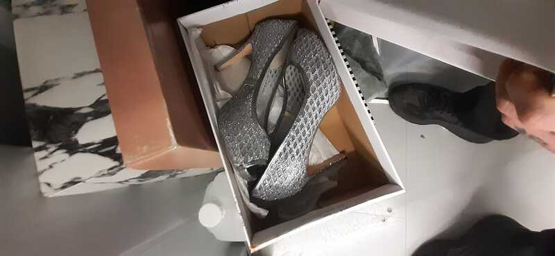 OLD BARBER ITEMS, WII BUNGLE, 2 APPLE MONITORS KEYBOARDS AND MOUSE, LADIES SHOES, KURMU GO PRO DRONE, 5 PIECE LIGHTING KIT FOR CAR, FEMALE CLOTHING