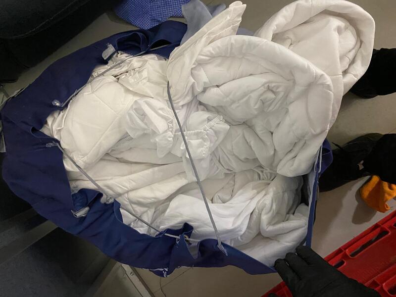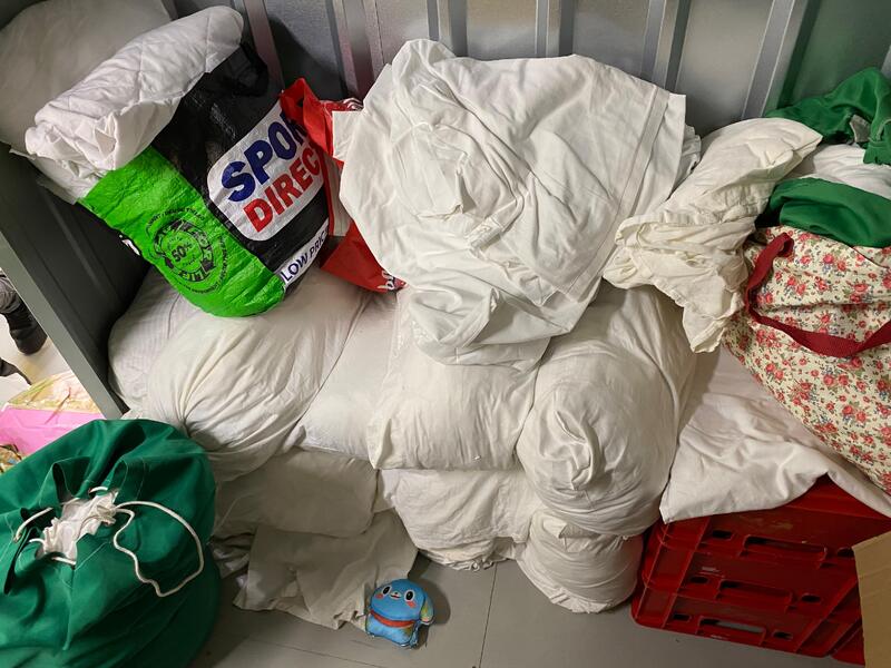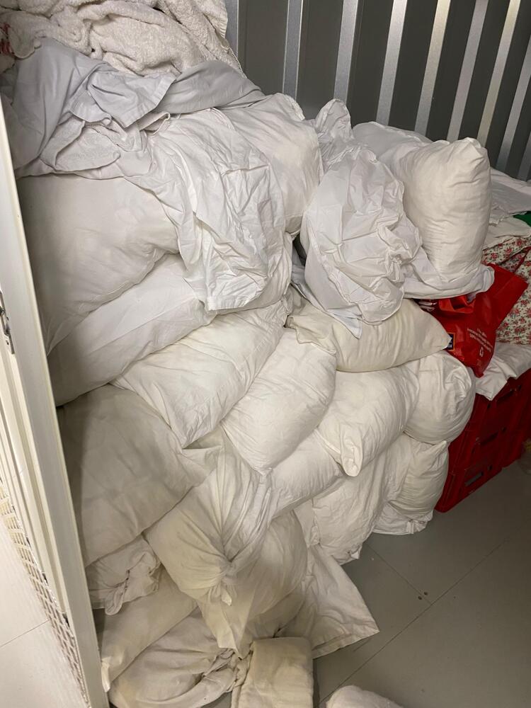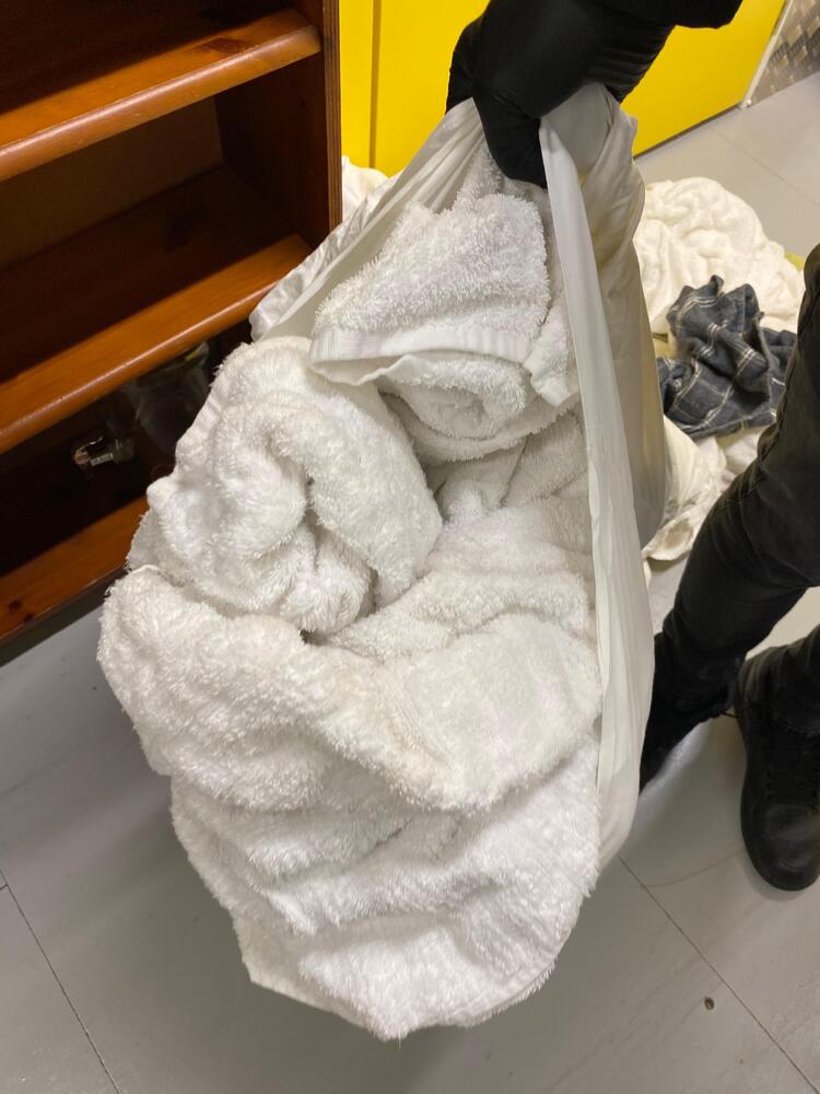 19 x pillowcases filled with various towels and some tea towels (mainly white)