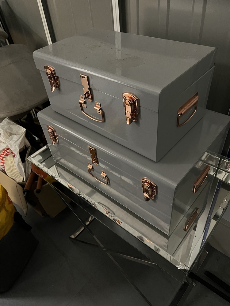 2 metal storage boxes