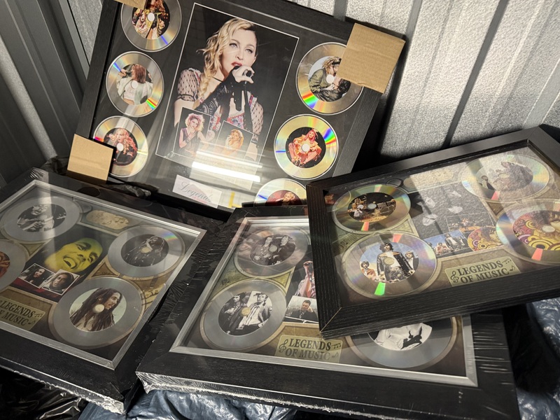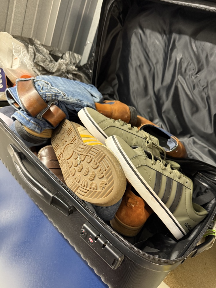 BEDDING, SUITCASE OF TRAINERS, STAR WARS FIGURE, LENARO LAPTOP, POLAROID CAMERA, 2 RINGS, TED BAKER SHOES, LEGEND MUSIC PHOTOS, CASSETTE TAPES