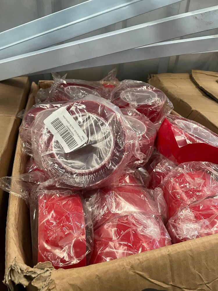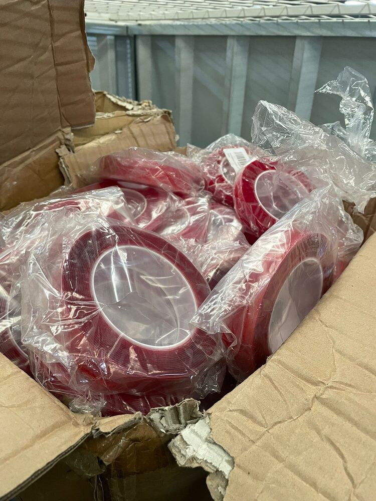 8 boxes of red rubber double sided tape ( 1000 plus rolls)