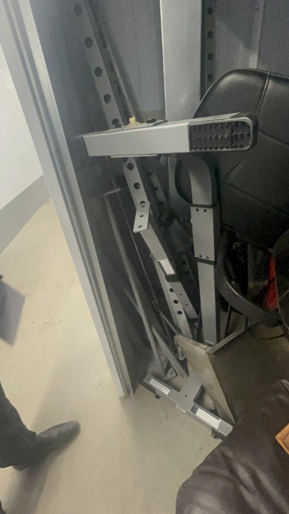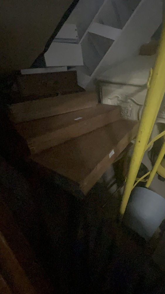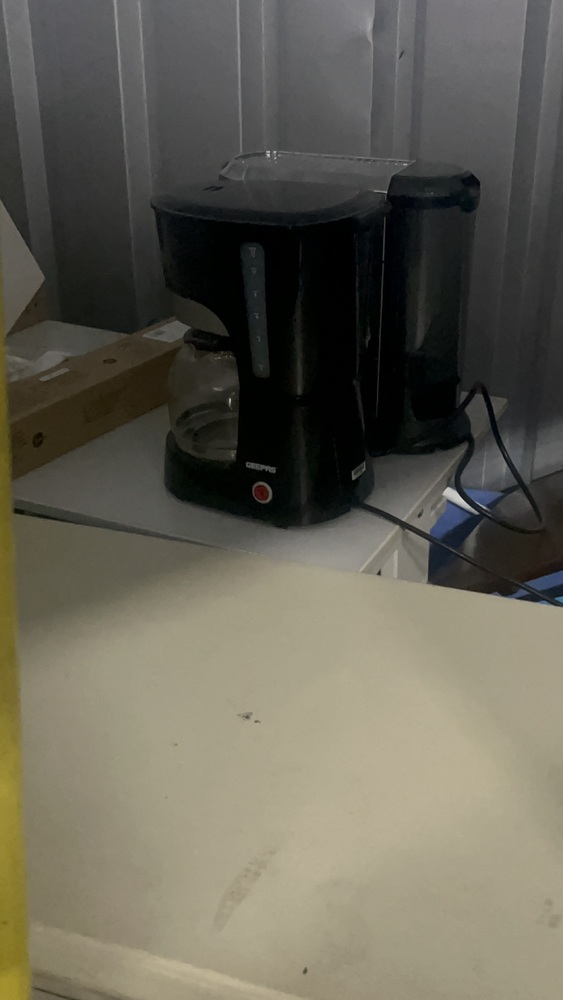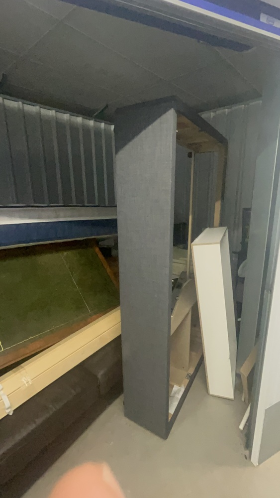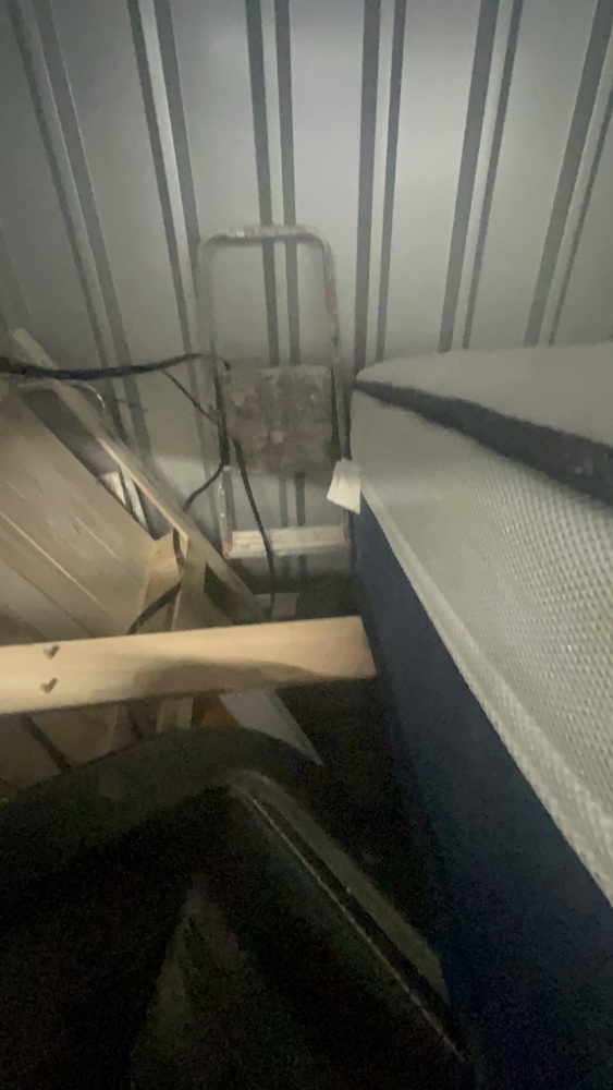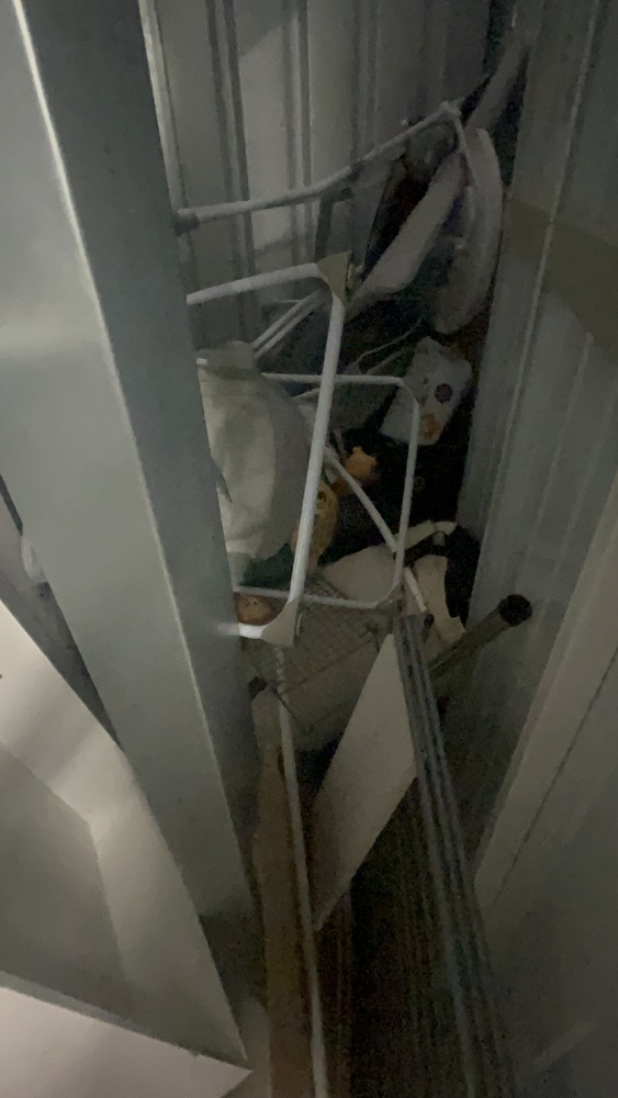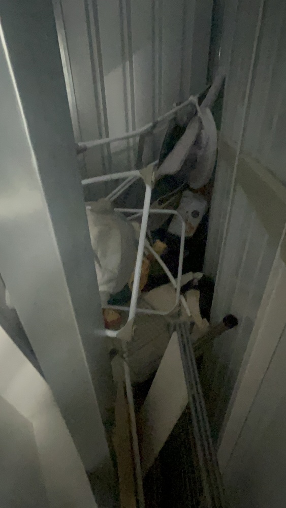 Unit has cabinets, frame for bed, step ladder, karcher vacuum. Coffee table, office chair. Bedside table