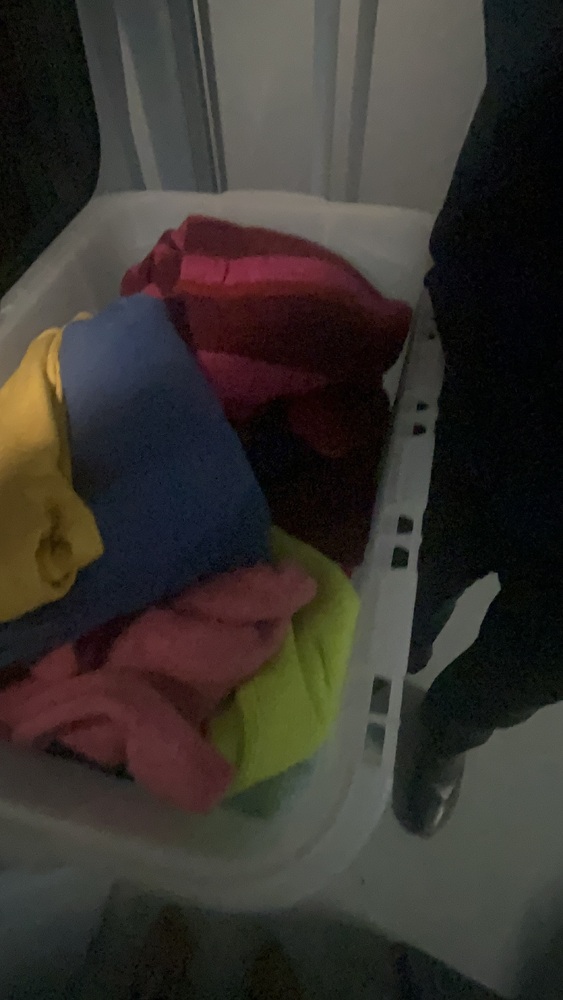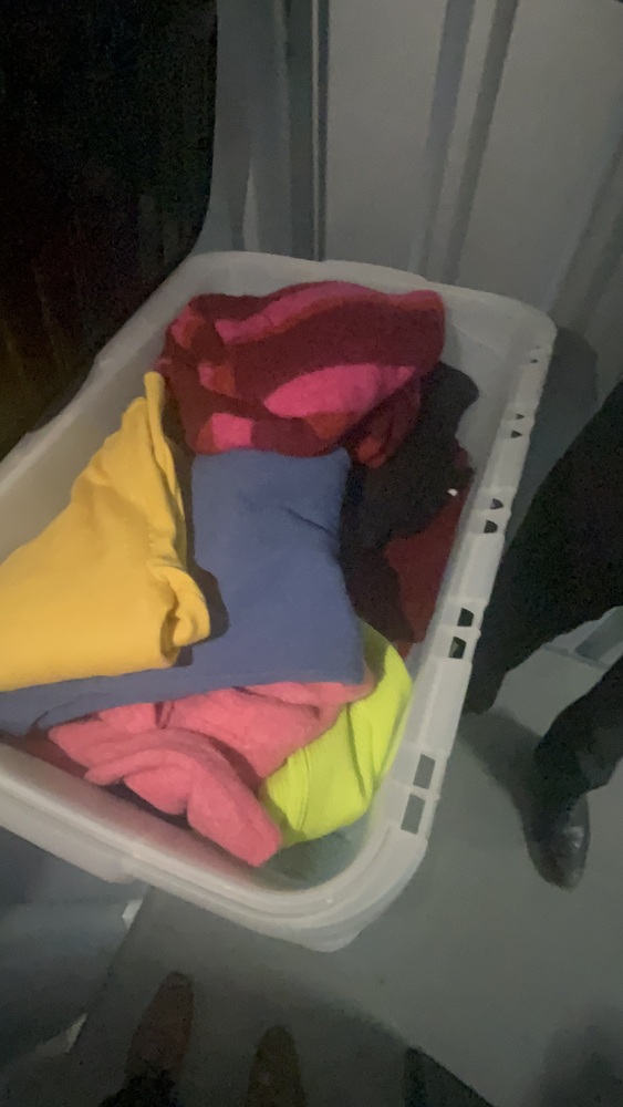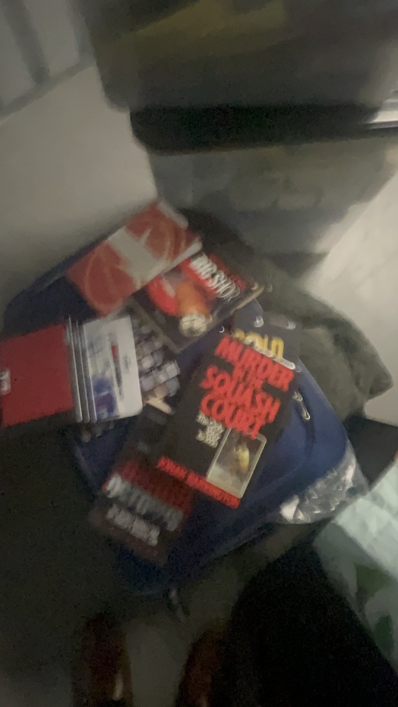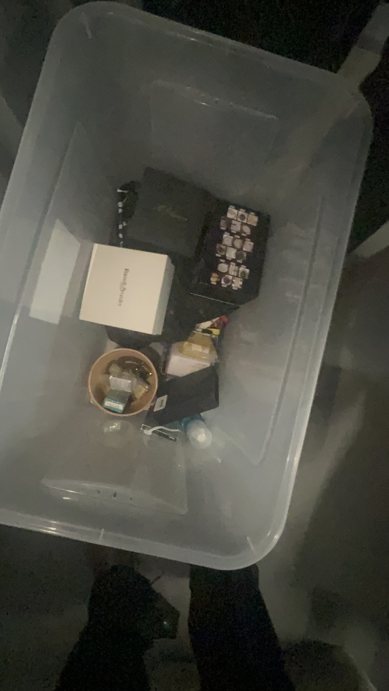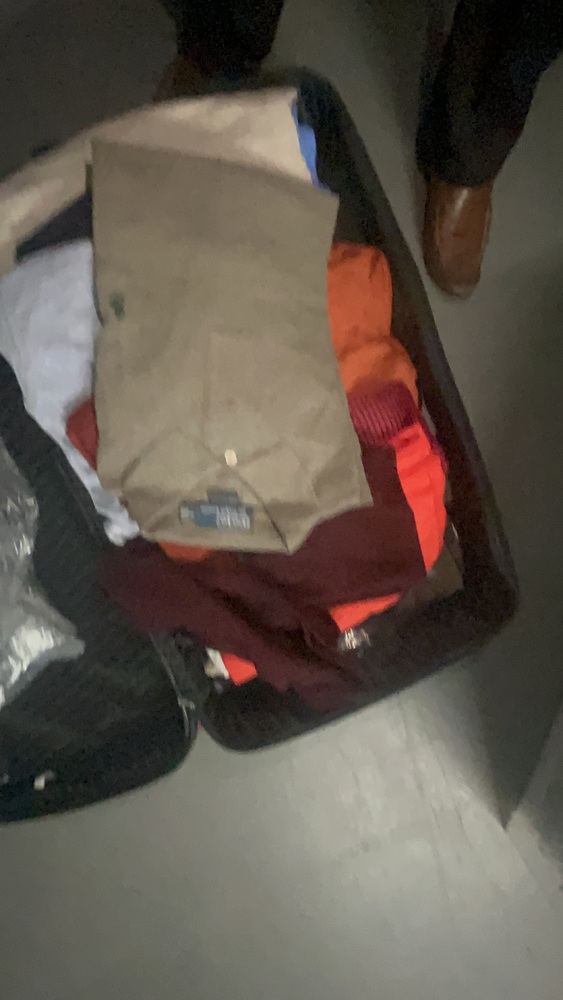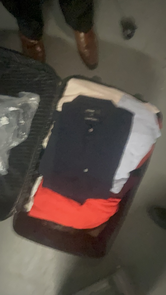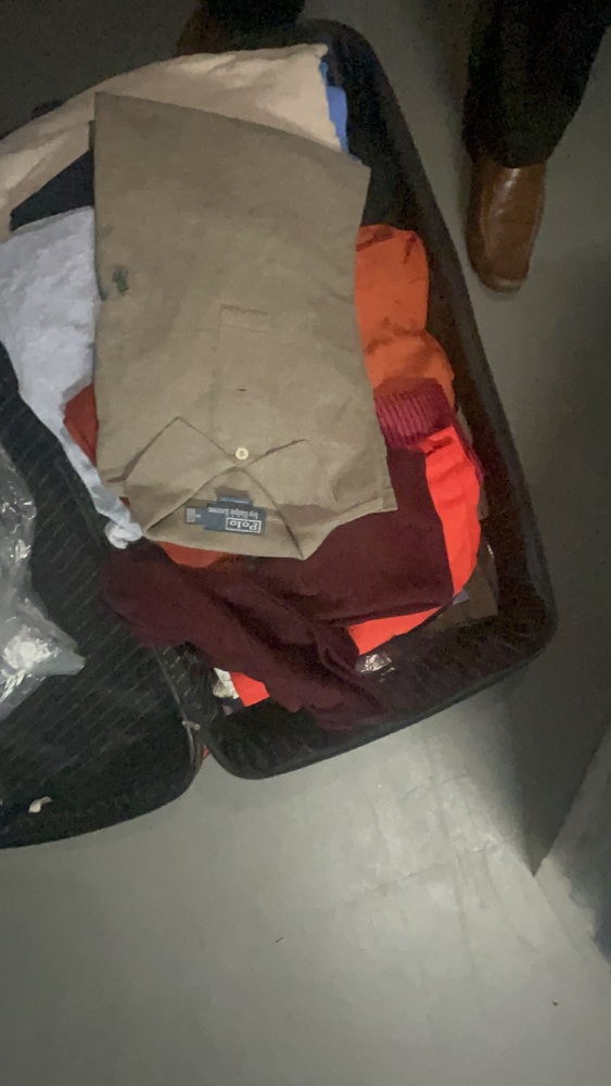 Unit has household items. Suitcases of clothes, mostly men and some designer clothing. Other boxes have books and empty boxes with.