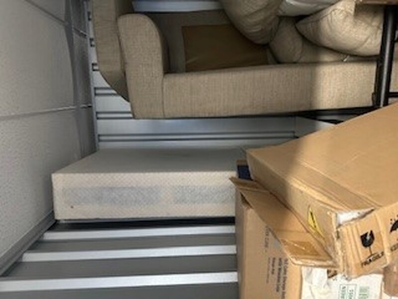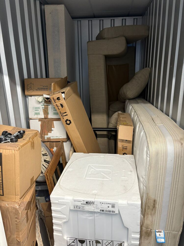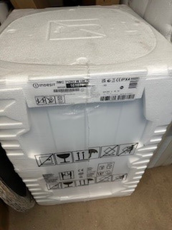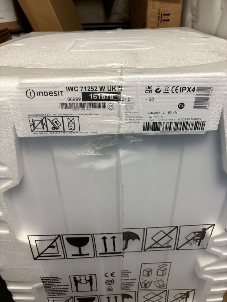 50sqft full unit of various house items. Most noticeable is a wrapped Indesit iwc 71252 washing machine