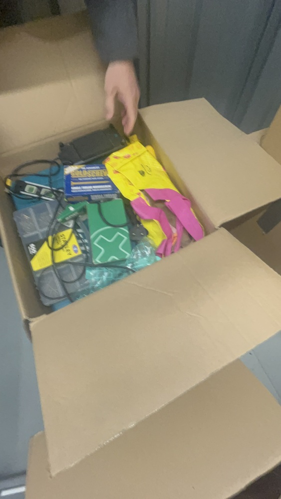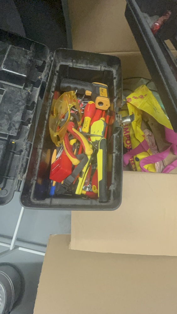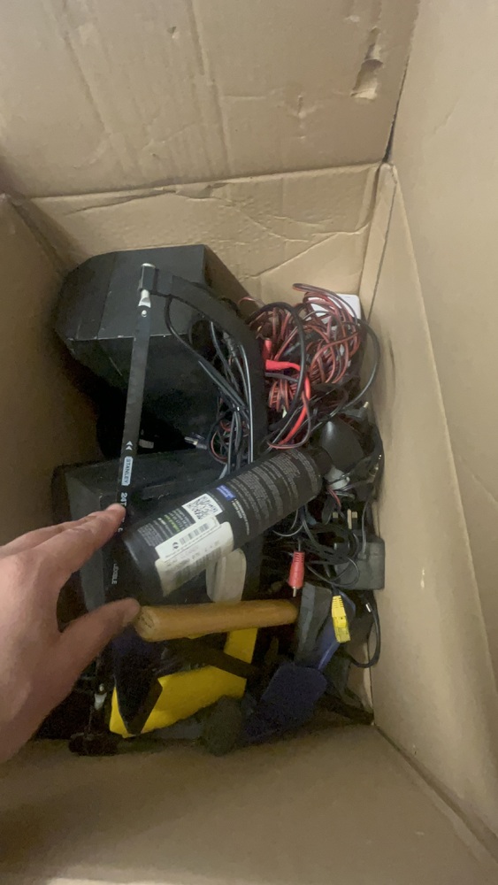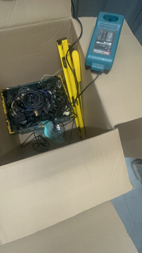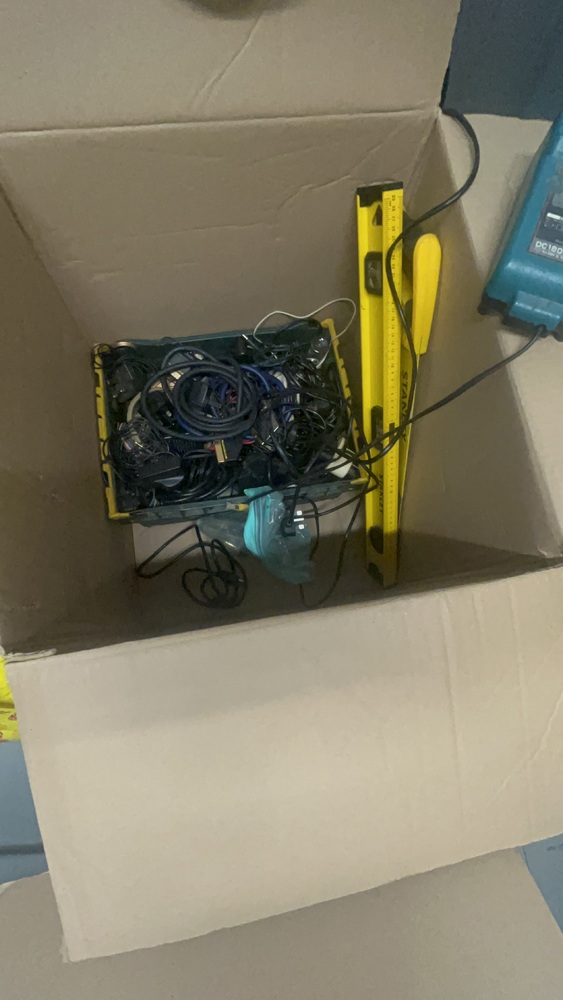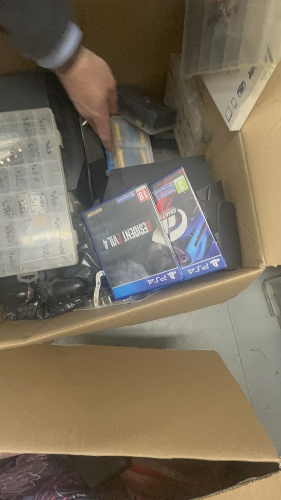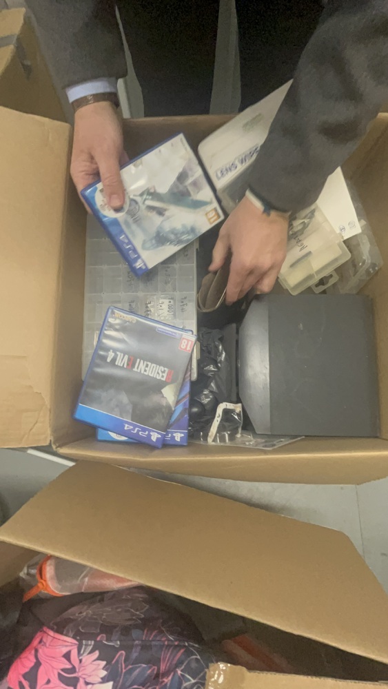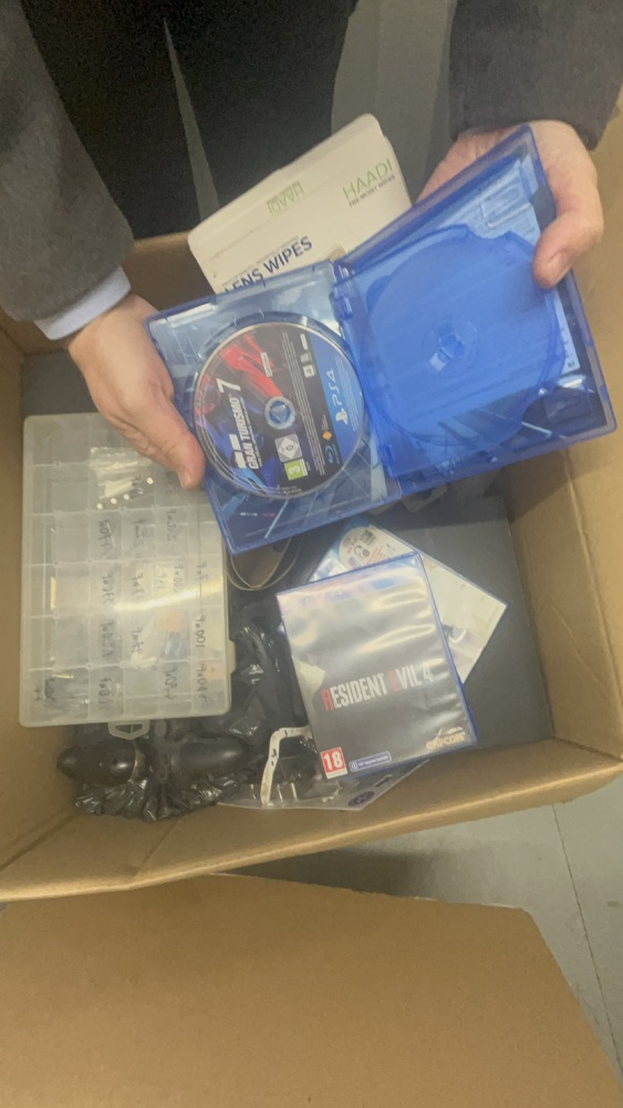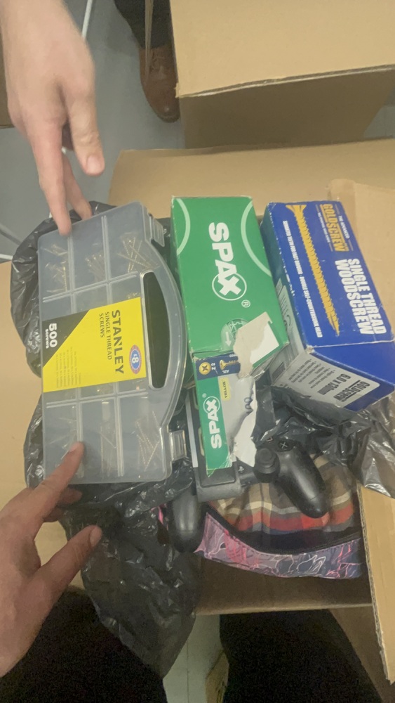 Office chair, suitcase. Board games, clothes. Books. Hair straighteners. PlayStation and PlayStation games. PlayStation controllers.makita case with multi tool, multi tool charger. Tool box with tools.Nintendo switch case.spears and Jackson pressure spray. JCB pressure spray.