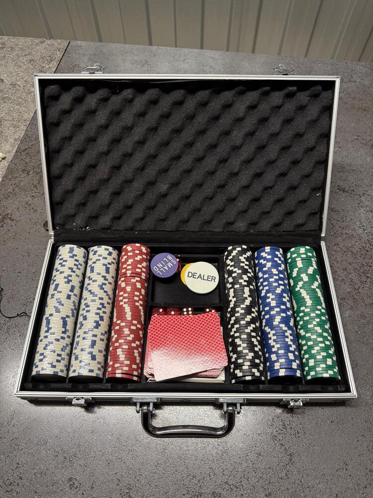 Poker chips set with a deck of cards