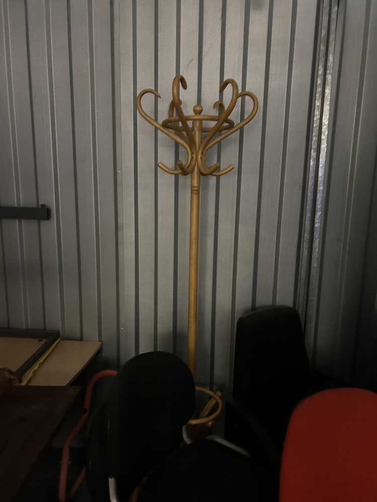 Desks, filing cabinets, shredder, portable heater, Xmas tree, wooden chairs, office chairs, hat stand,