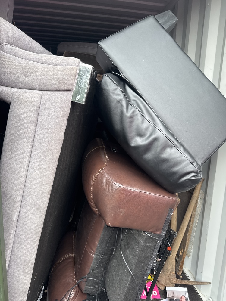 Auctioning the complete contents of a storage container consisting primarily of various sofas. This lot includes a selection of sofas in different styles, sizes, colours, and materials, suitable for homes, rental properties, offices, or resale. Items may range from fabric to leather sofas, including two-seaters, three-seaters, and possibly sofa beds.
