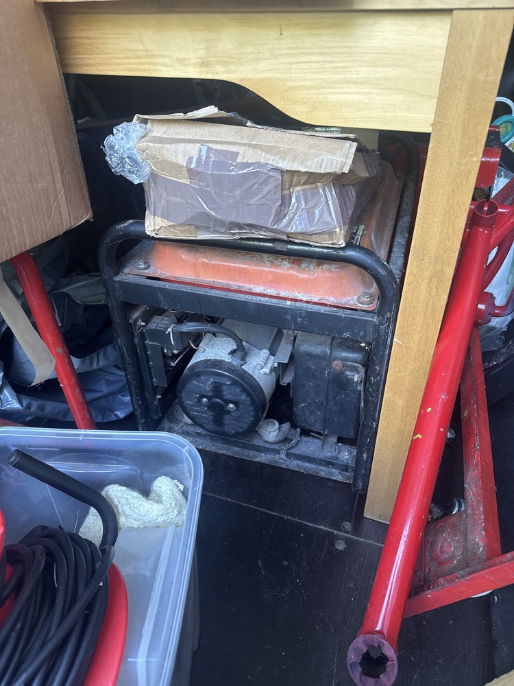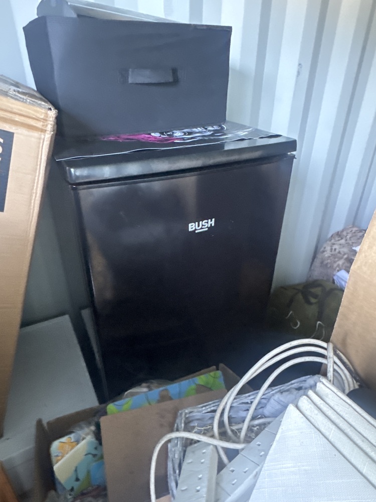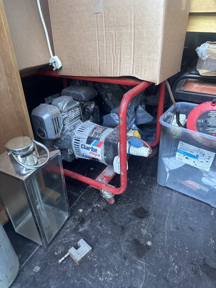 Auctioning the full contents of a storage container sold as one lot. Items include petrol generators, a fridge freezer, washing machine, PS3 console, bicycle, double bed frame. Also included are various boxes containing mixed household items. Contents appear suitable for resale, refurbishment, or personal use, offering a good mix of appliances, furniture, and electronics.