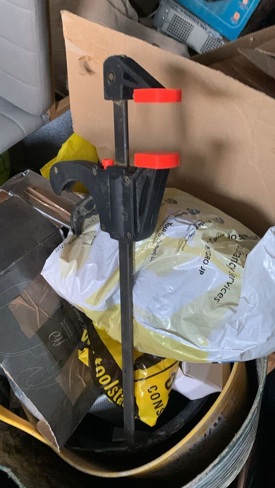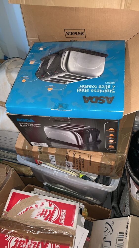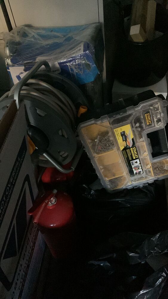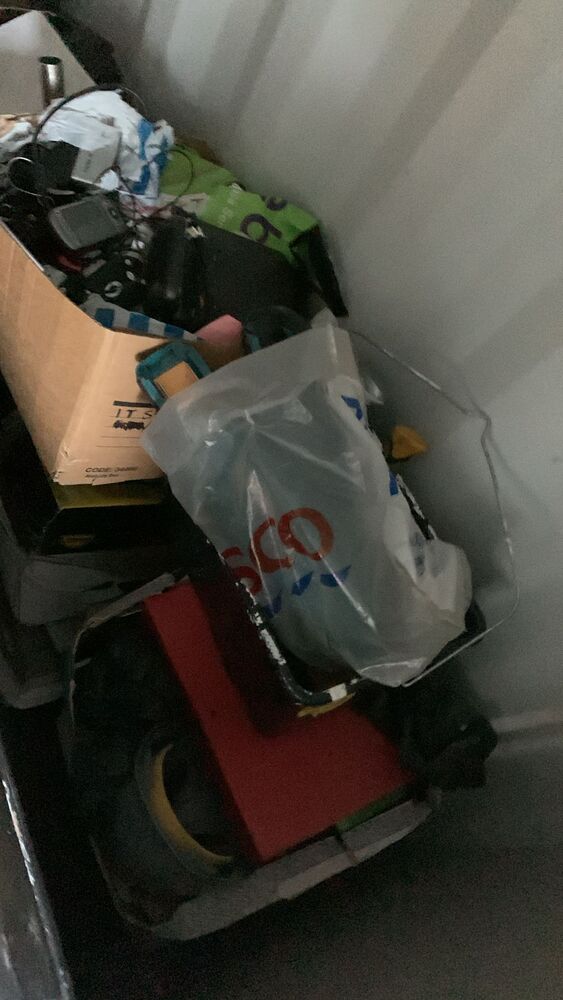 We have found various items in a 20-foot ground-floor container, including toolkits, bicycle helmets, wires, lights, a vacuum cleaner, staircase materials, decorative lights, a toaster, plates, keyboards, and other metal items. Please note that the working condition of these items is unknown. Kindly take this into consideration when placing your bid. Thank you.