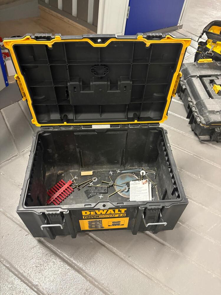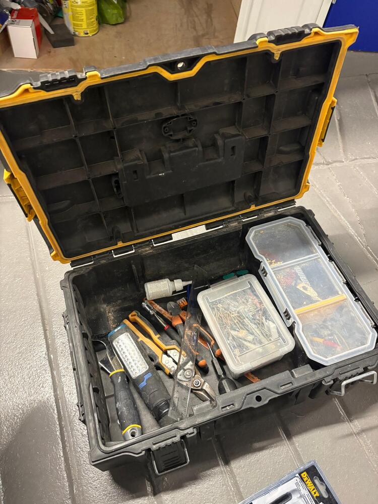 - 2 x DeWALT Stackable tool boxes (all with tools, misc trades items)