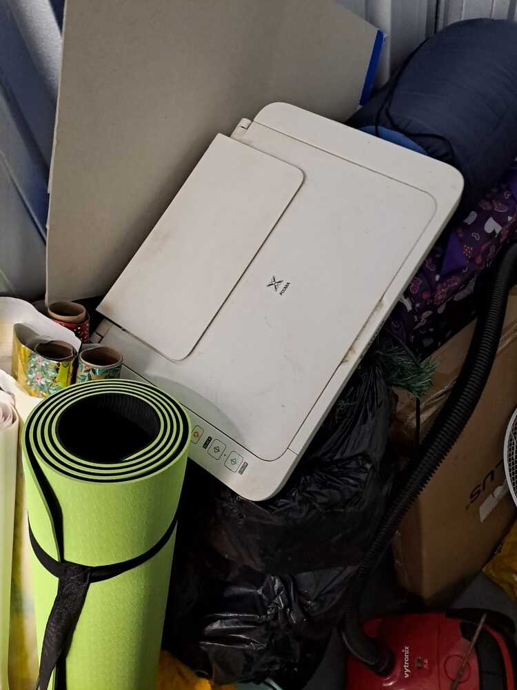 Samsung phone, Chair, Samsung mobile phone, Office chair, Printer Gym equipment, Box of bedding, Clothes