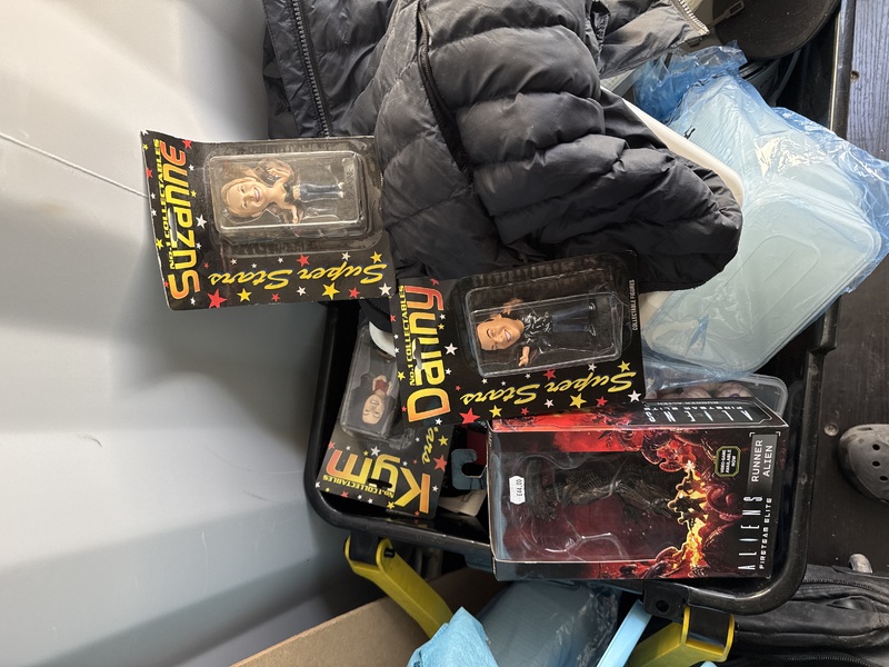 This auction offers the full contents of a storage container sold as one lot. Inside you will find a mixed collection of clothing, including assorted adult and children’s items in varying styles and sizes. The container also includes a selection of miniature figures, ideal for collectors, hobbyists, or resale, along with a variety of kids’ plush toys in different characters and conditions