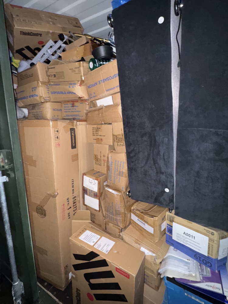 This auction offers the full contents of a storage container sold as one lot. Inside you will find a large quantity of cardboard boxes containing assorted, unknown items, ideal for resellers, traders, or anyone looking for a potential bargain. Also included is a single divan bed, suitable for a spare room, rental property, or resale.