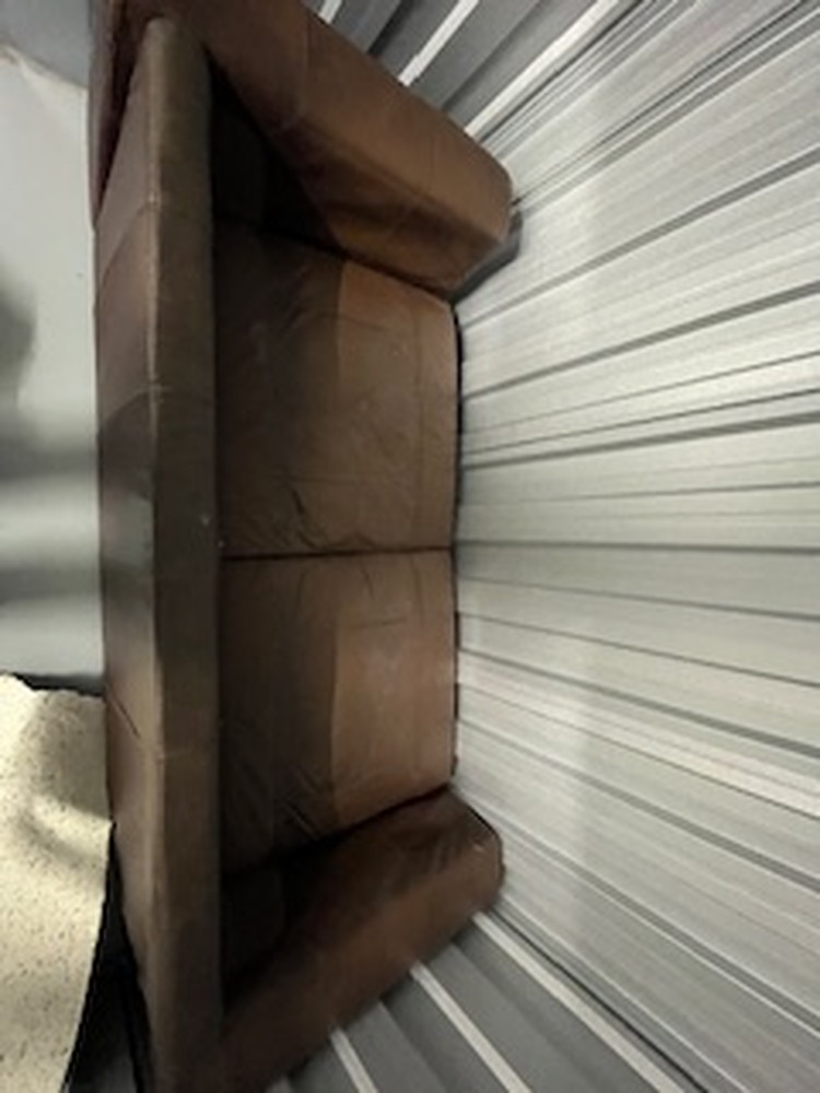 A large 75sqft unit containing a large sofa, washing machine, some carpet underlay and a large teddy.
