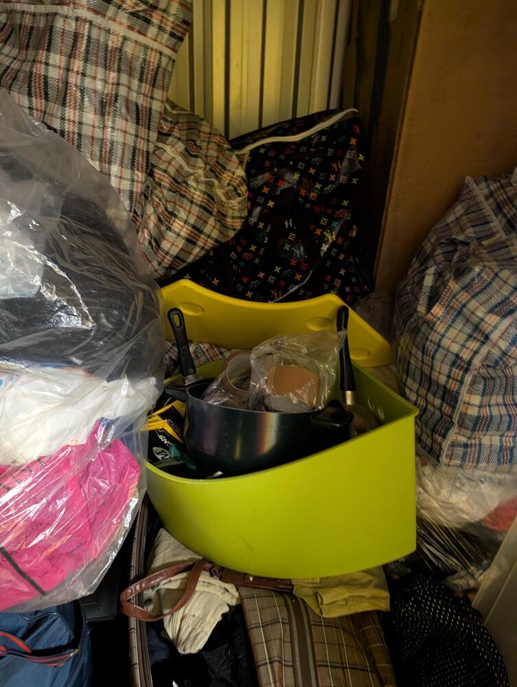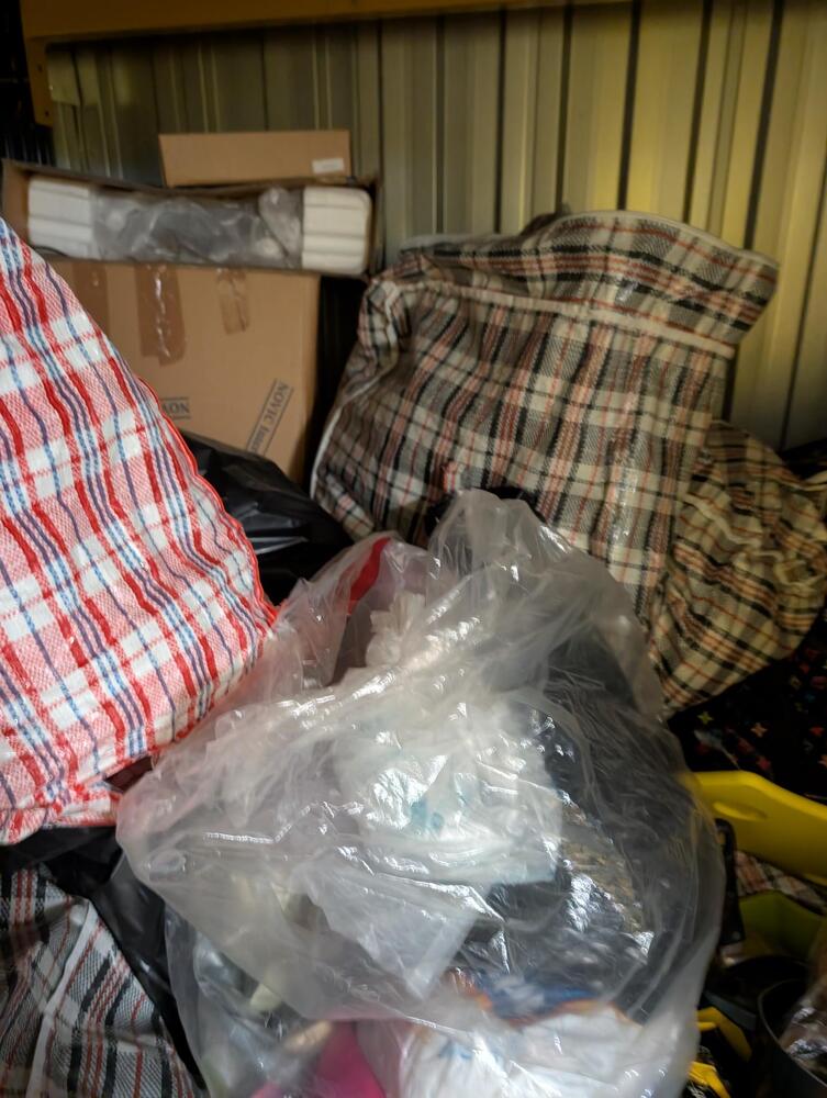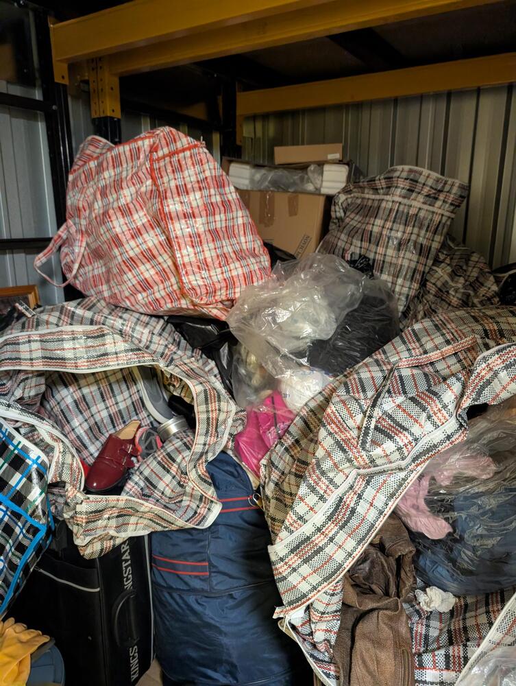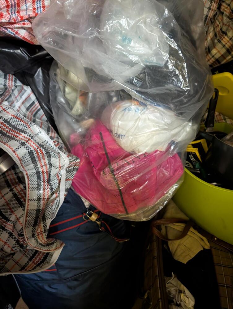 Large bags with household items in