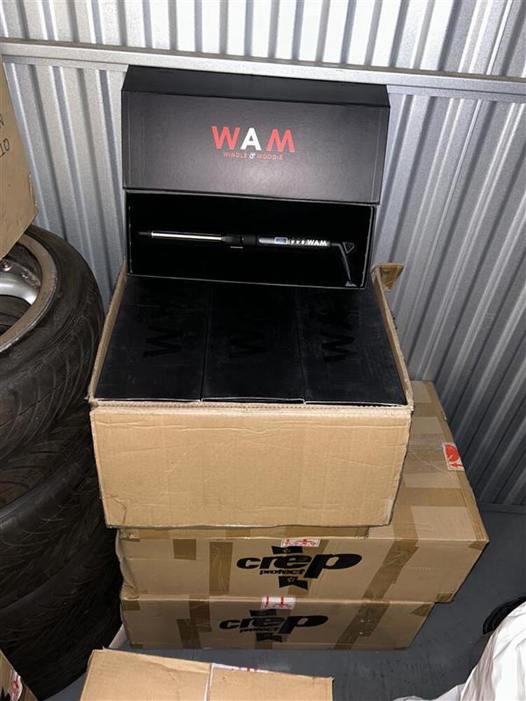 4x ABT wheels and tyres, 18x WAM curling iron (brand new £75 rrp), RIZZLA light box, Brown chesterfield sofa, multiple crept protect boxes, new speakers, Tech, 2x Kinnarps lamps, LED light cube, books, Music mixer.