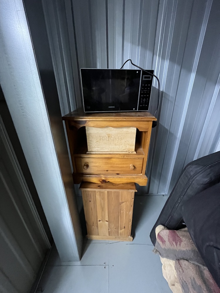 50sqft unit with a large amount of furniture inside. The furniture is good quality and in excellent condition. There’s a large sofa with all the cushions that are in good condition. A drill with drill bits and a stereo player.