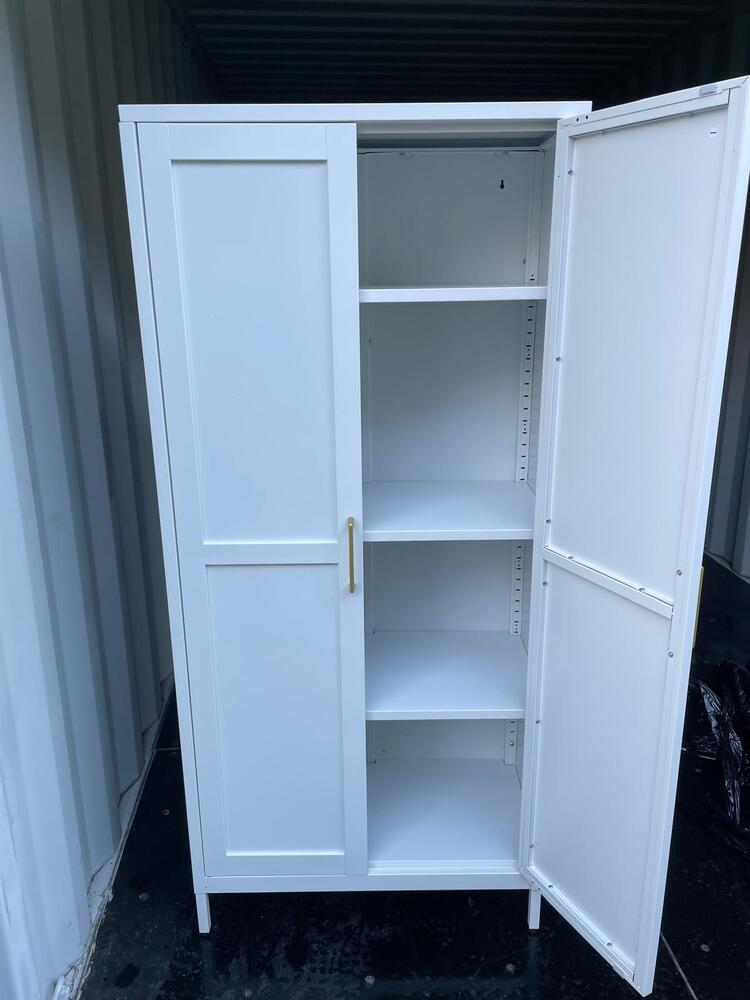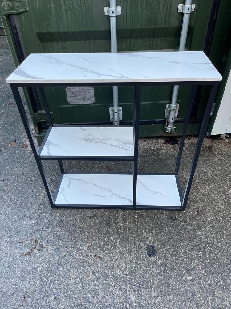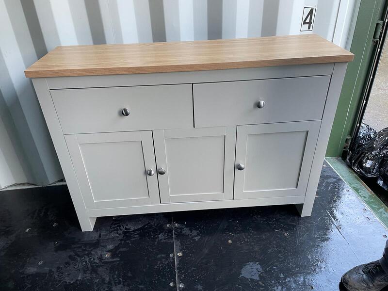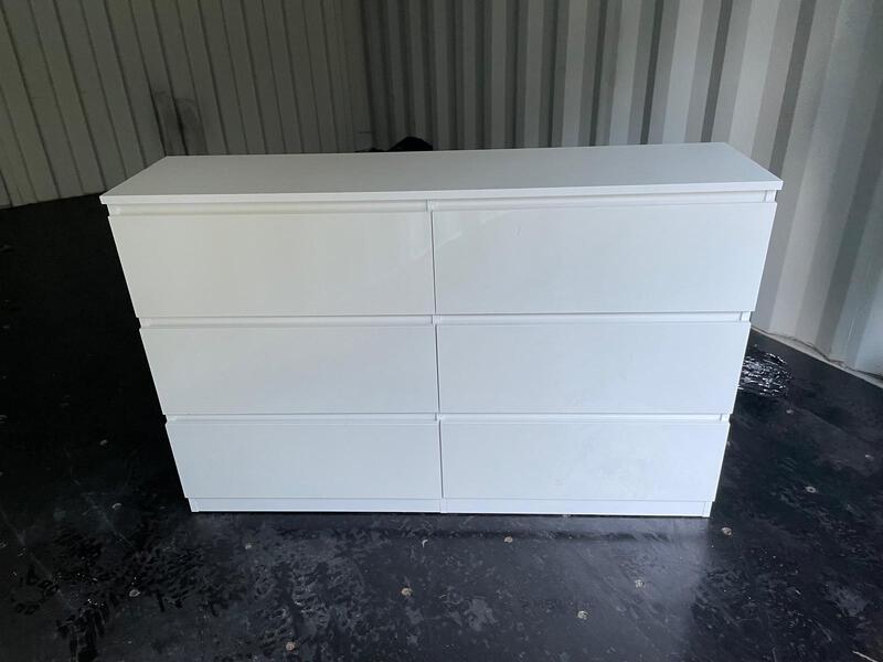 Lounge furniture of various sizes, mostly white. Including cupboards, side boards, coffee tables etc.