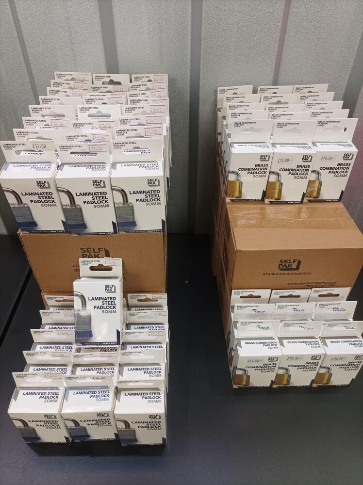 Large selection of around 160 Brand new padlocks - 50mm laminated keyed type and 4 digit brass combination style