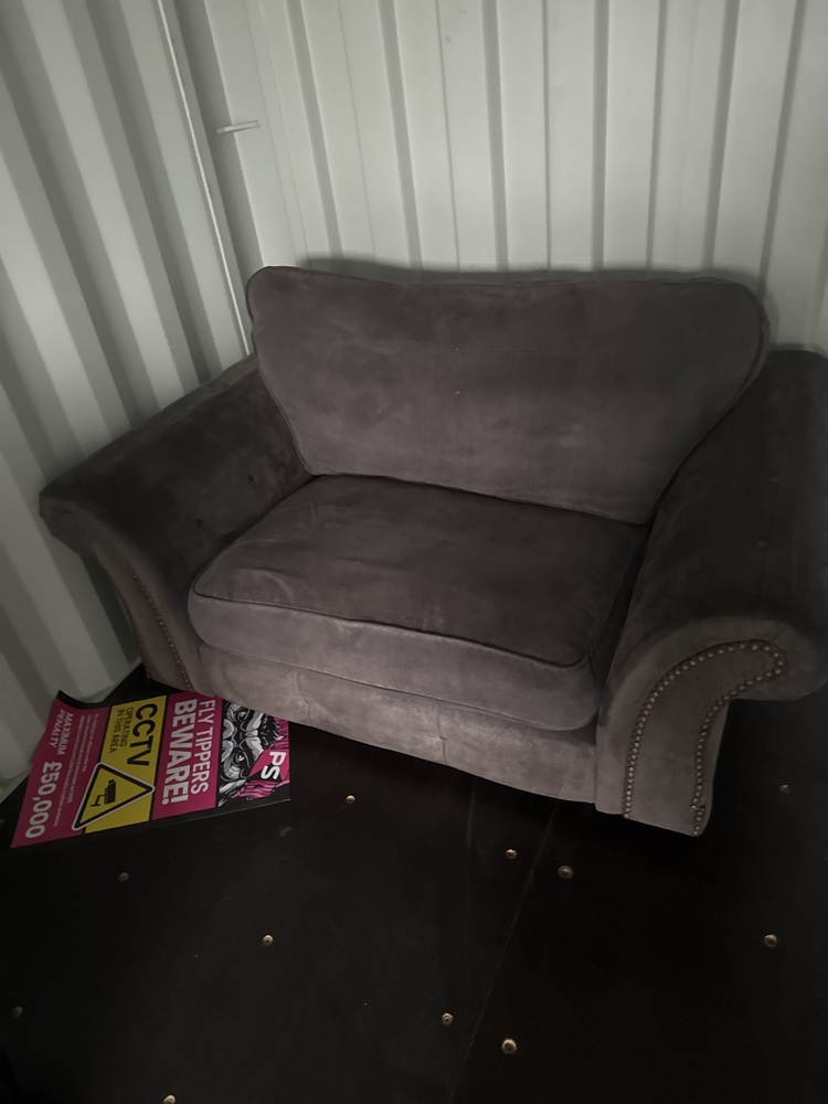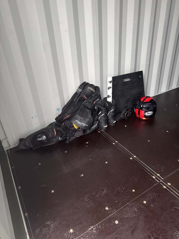 Auctioning the full contents of a storage container featuring a motorbike and associated equipment, along with a sofa. The motorbike appears complete and is accompanied by related items such as riding gear, parts, or accessories (exact quantities and condition unknown). The sofa is suitable for home use, resale, or refurbishment.