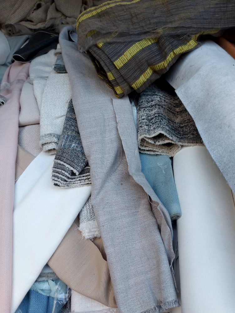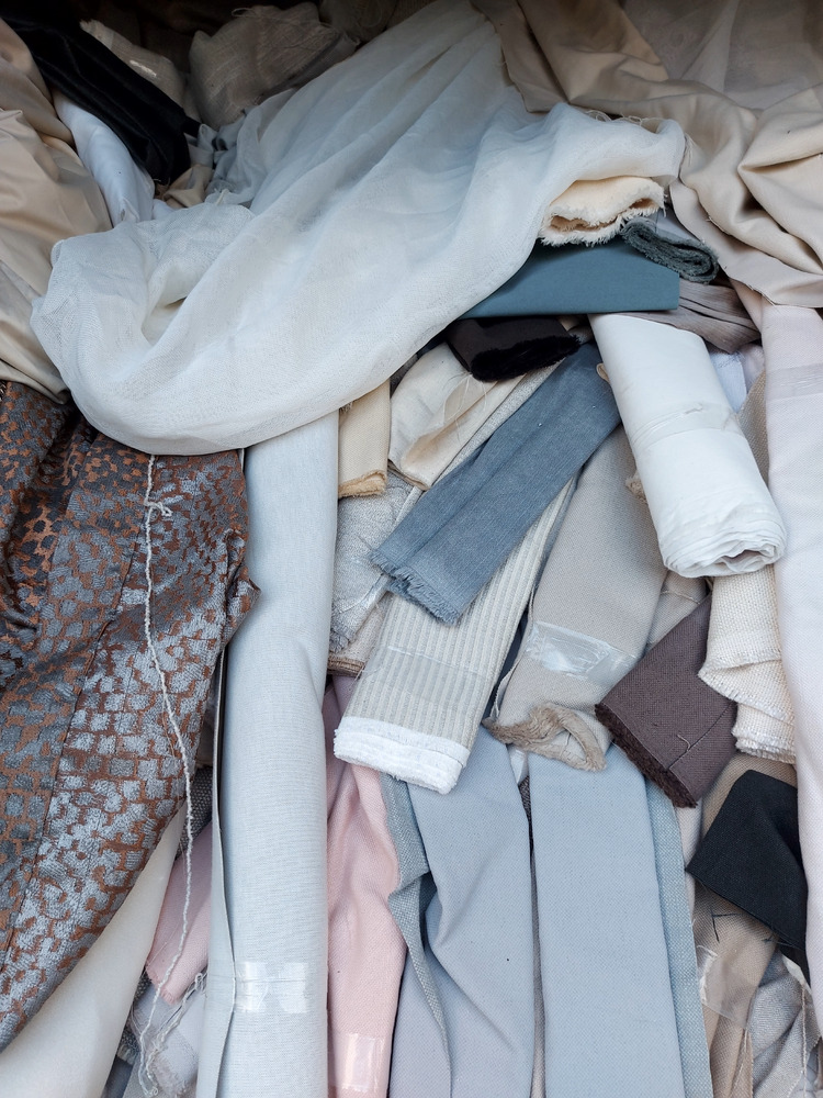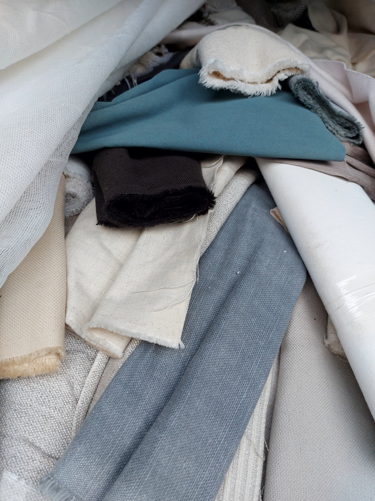Private auction. Mixed UK upholstery/curtain fabrics end roll cut-offs.
