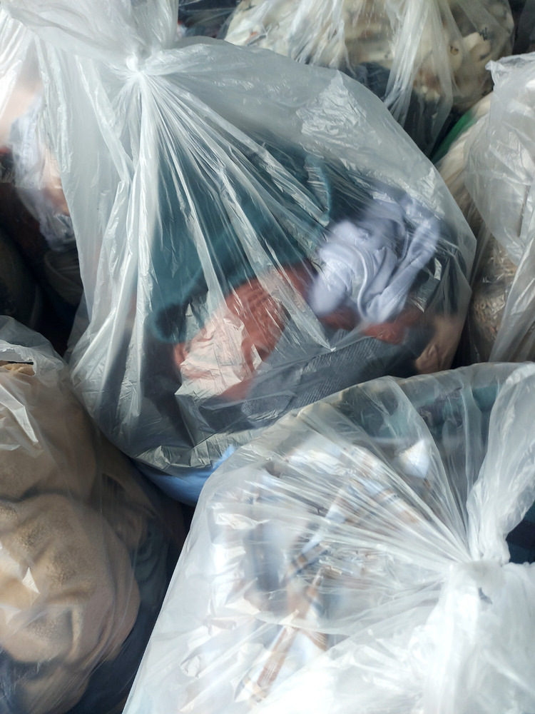 Private auction. 150kg of clothing excess, direct from local charity shop. The bags have been brought direct from charity shop, so they will be mix grades. A few bags were opened, only to do photos for this auction. "Will fit into a reasonable size car"