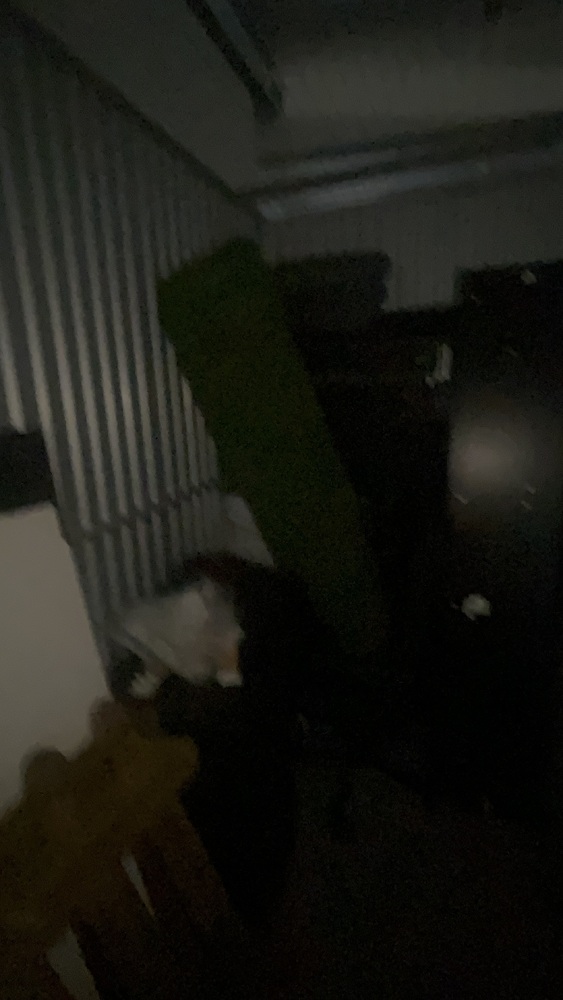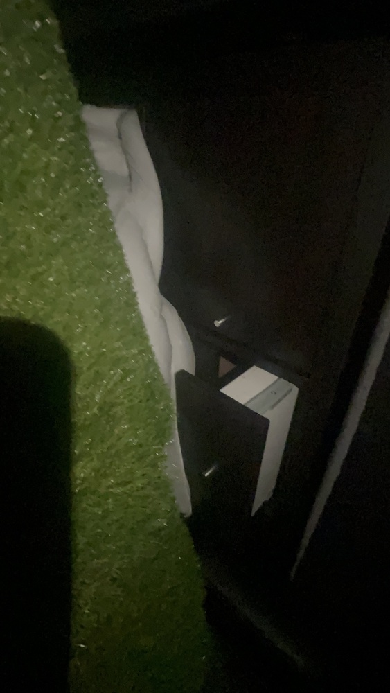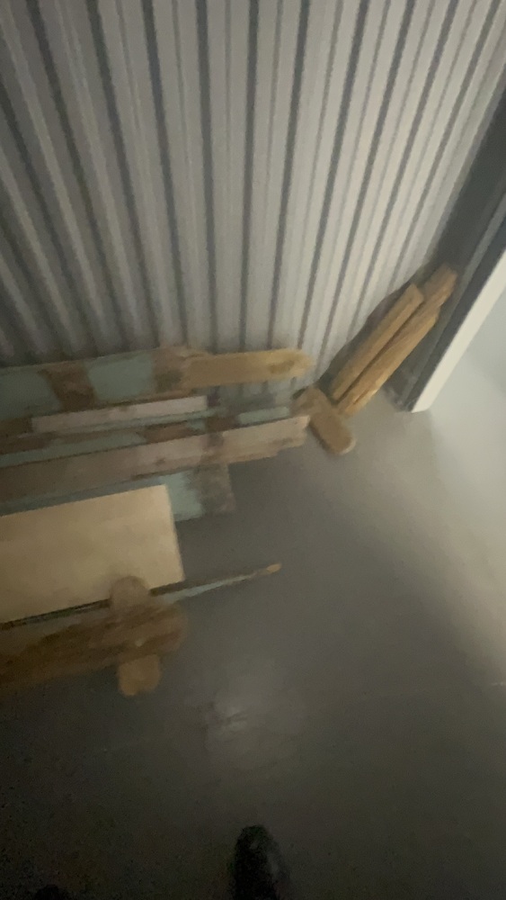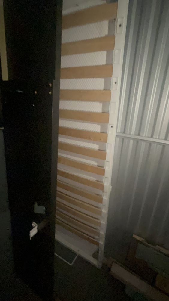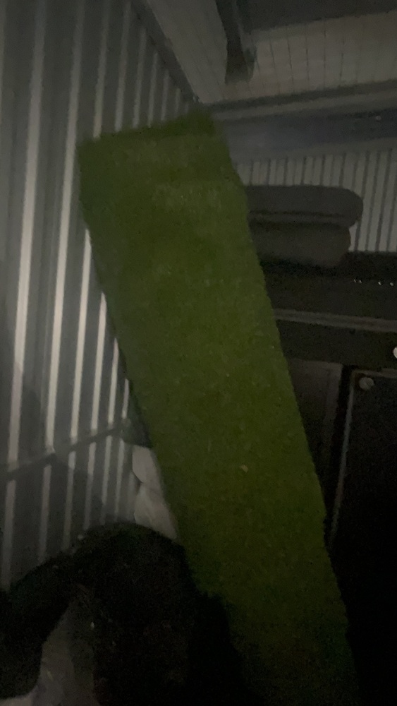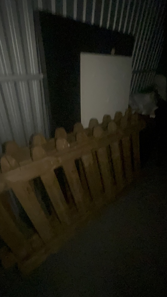 Unit has wood, fencing for front garden, solid wood. Artificial grass roll. Office desk, office chair, bed, sofa to cabinet.
