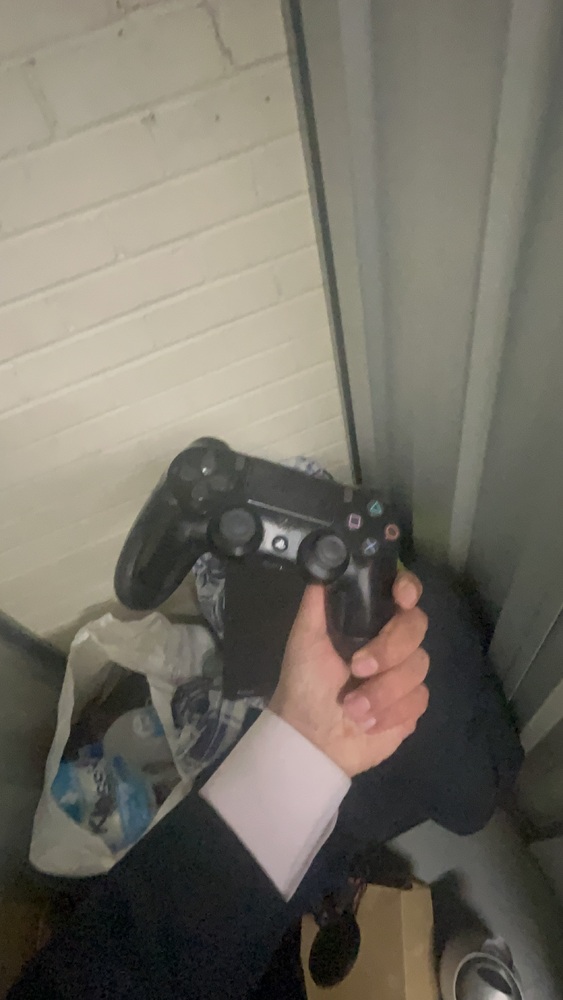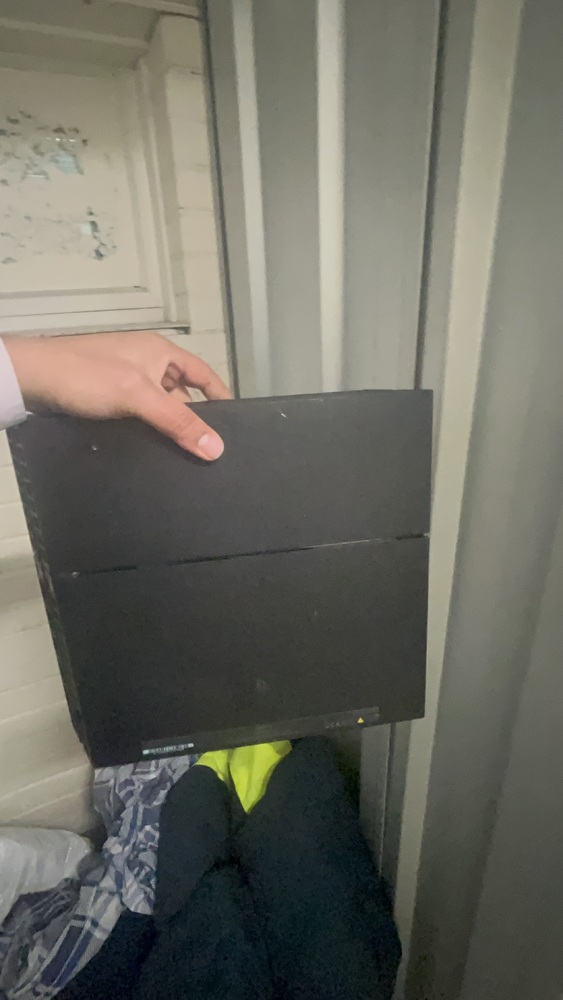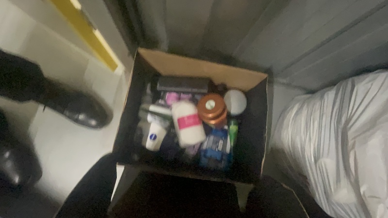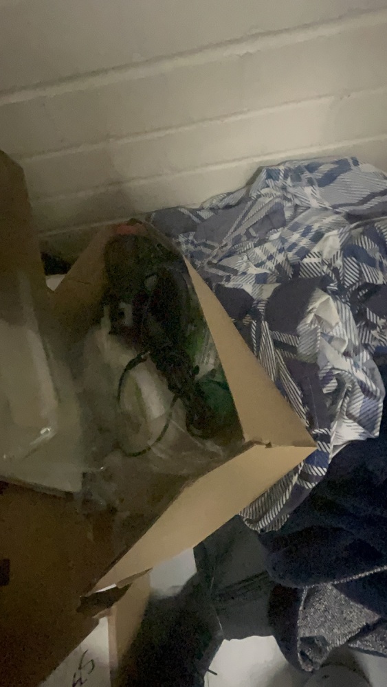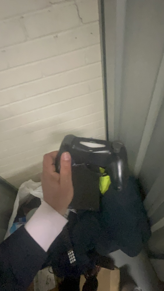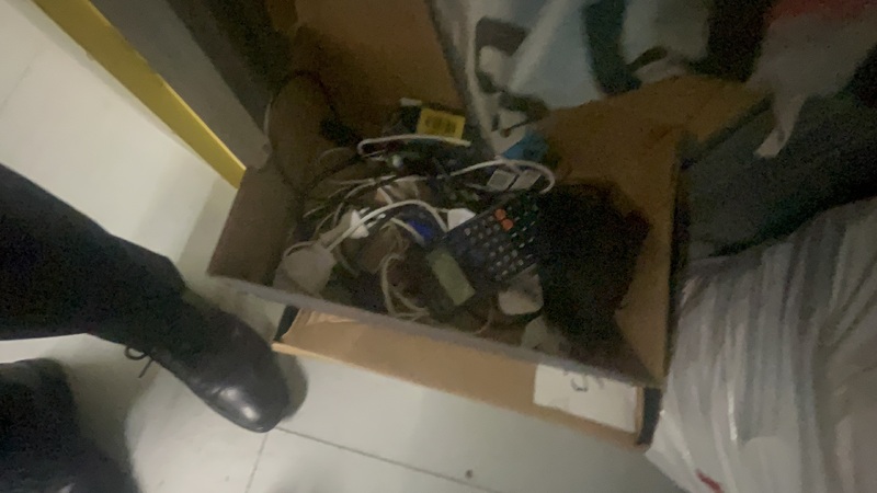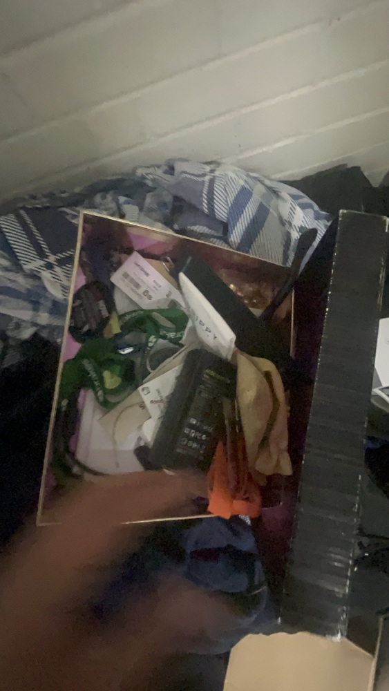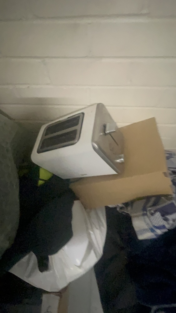 Unit has household items, Hisense TV, kettle, toaster.microphone. Nike trainers, PlayStation 4 with controller.Lenovo headphones.