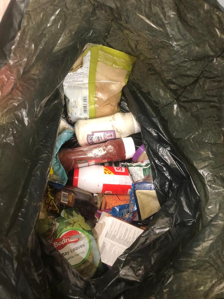 Bag containing sauces and dried food