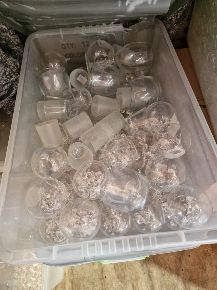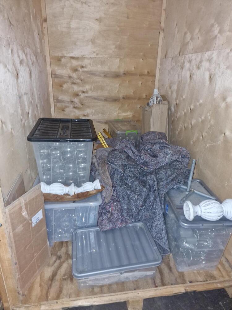 Please note no grey blankets are included as these are provided to our customers and will need to be left in units. this unit appears to have belonged to an amazon/ebay seller. lots of new items with labels on plus alot of glassware and plates perhaps from an event company.