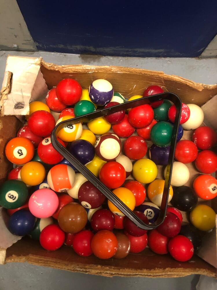 Box of pool and snooker balls