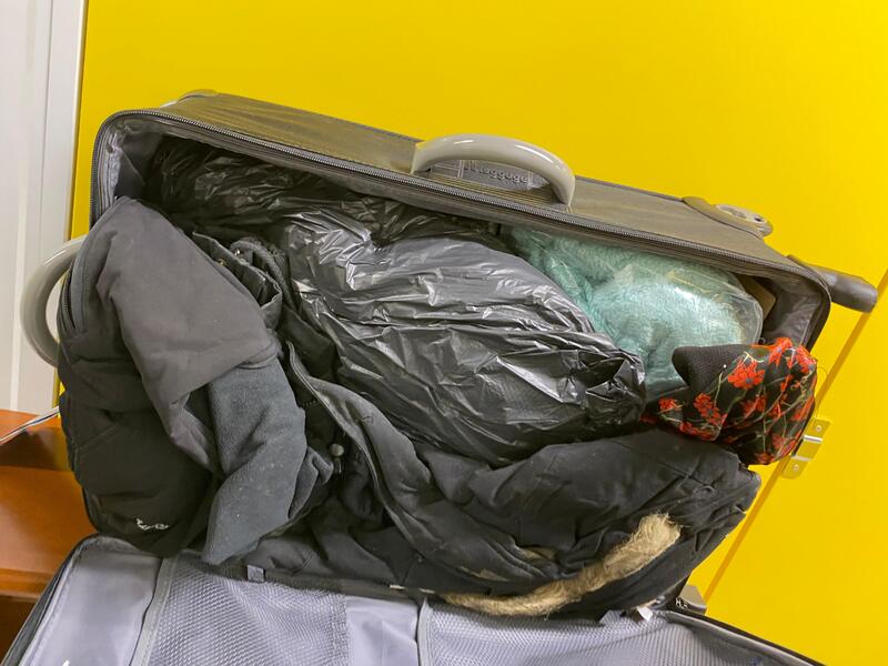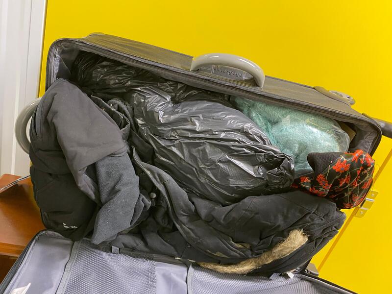 IT Luggage suitcase with an assortment of clothes