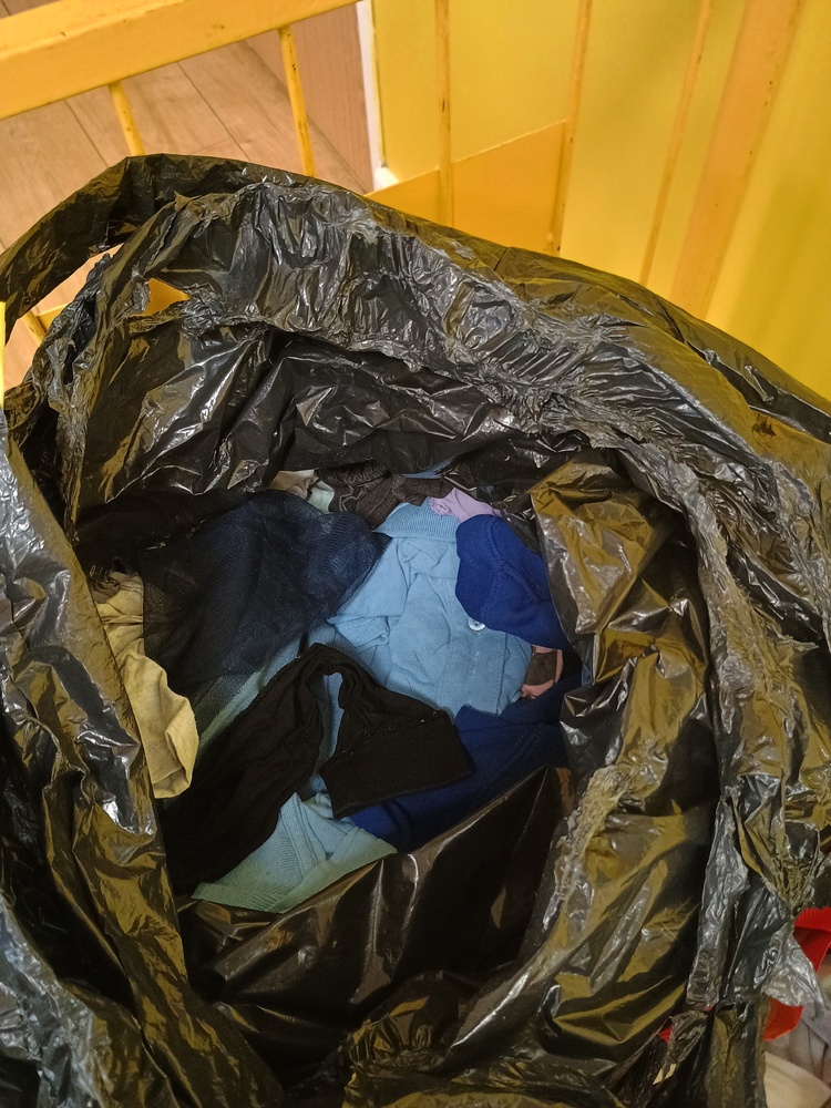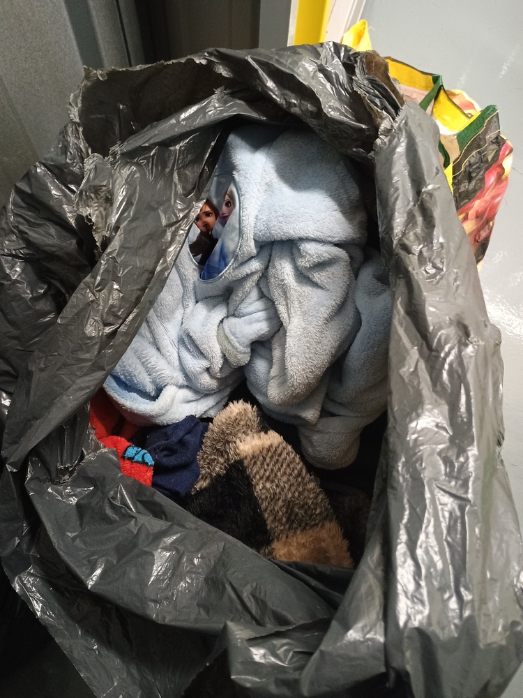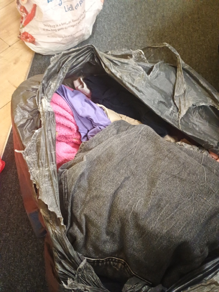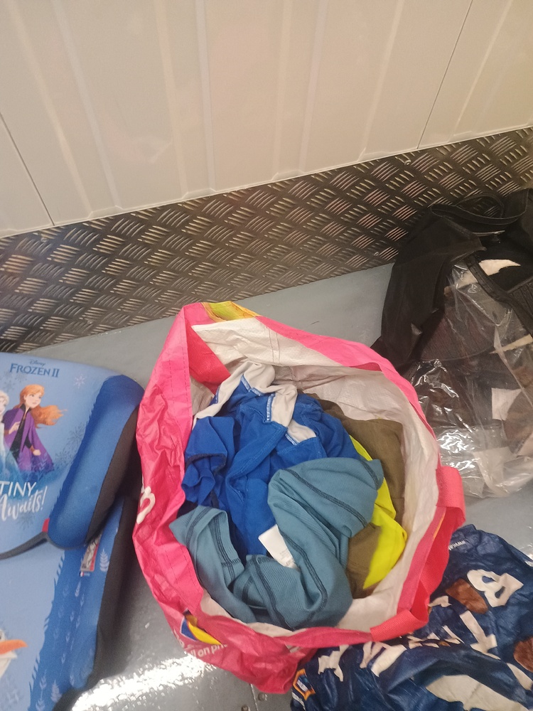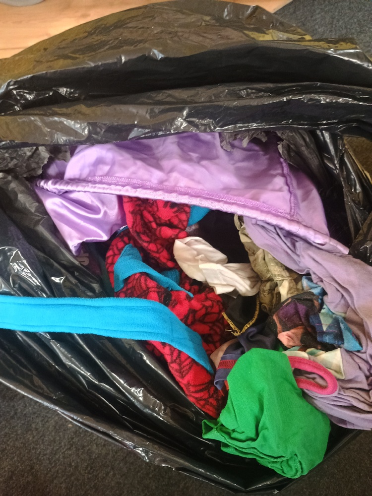 Assorted bags of childrens clothes