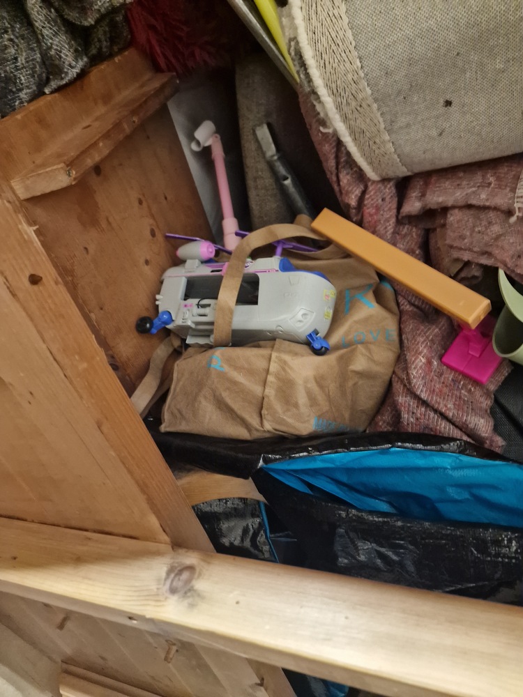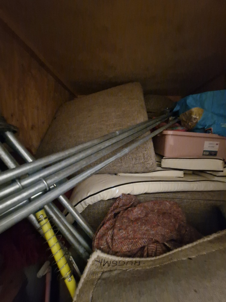 Please note grey packing blankets are not included. Looks like general household items inc sofa, kids toys and a what looks like a full trampoline.