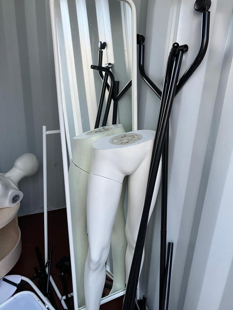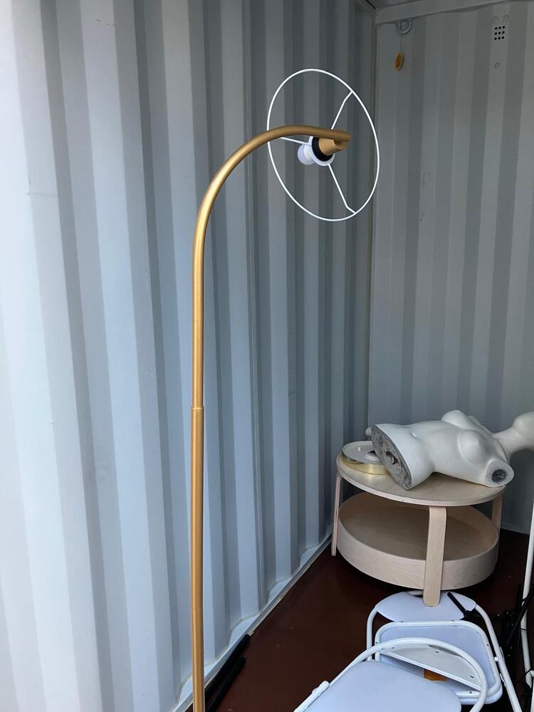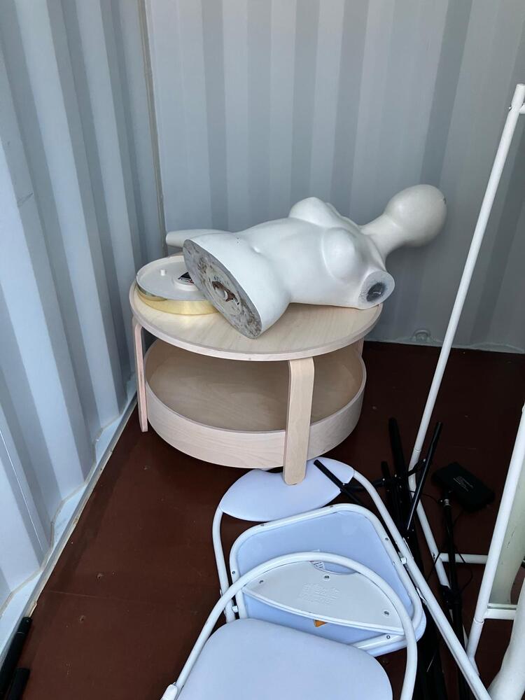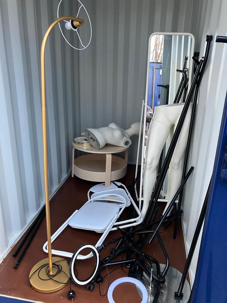This unit contains a Lamp, mannequin, table, a mirror, selfie lamp , some poles, and a couple of chairs