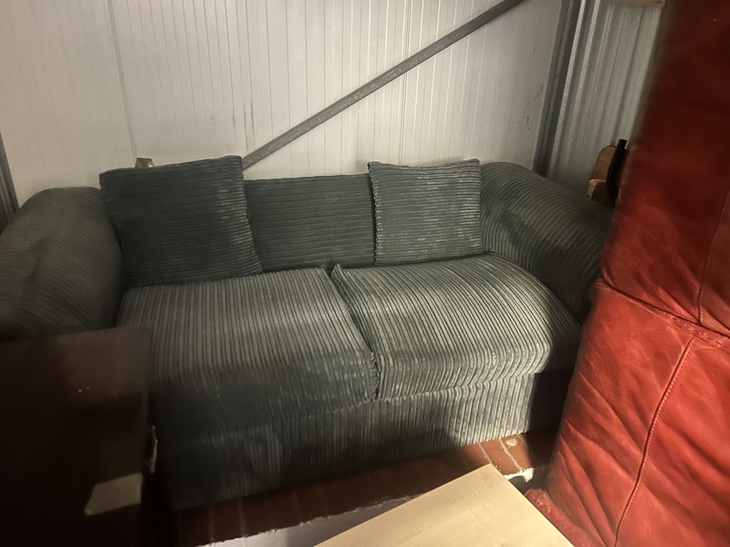 Sofas, in good condition, filing cabinet, furniture. Sleeping bag.
