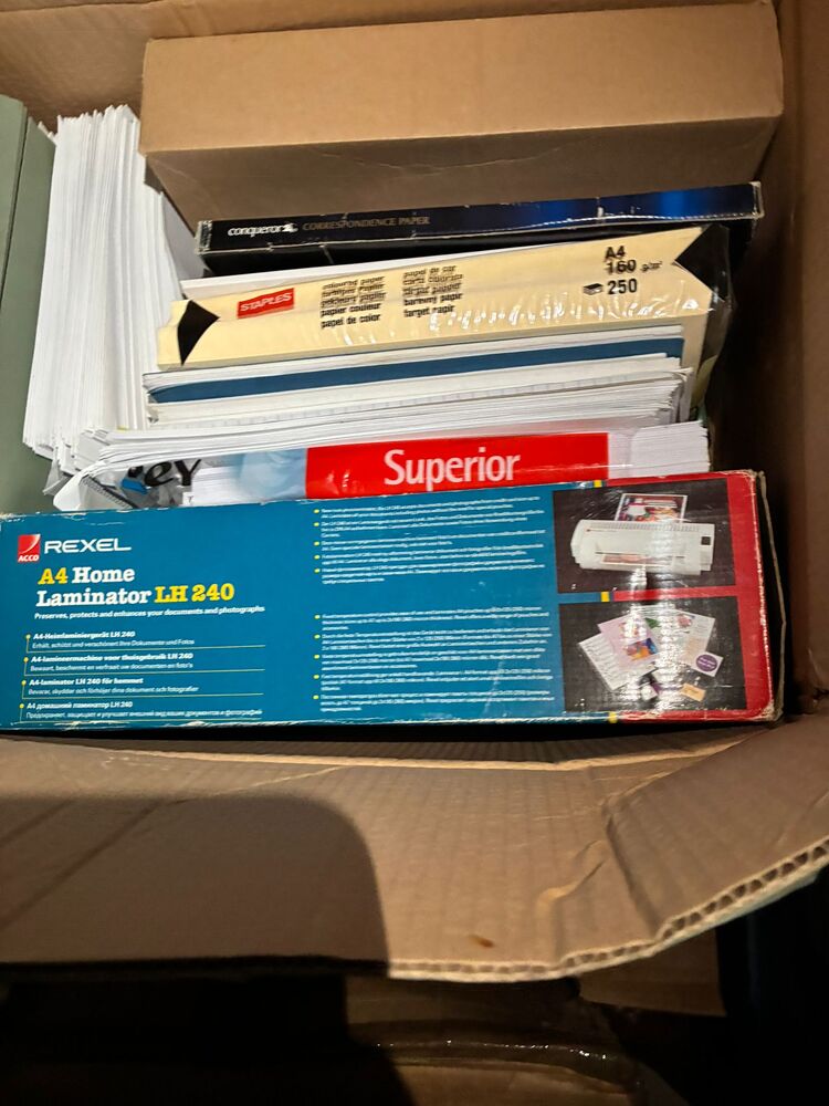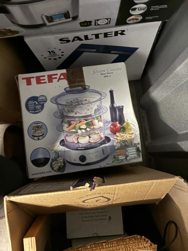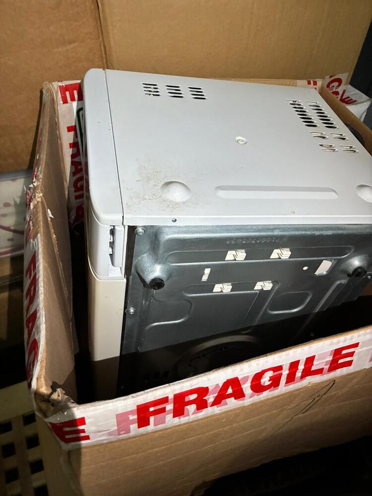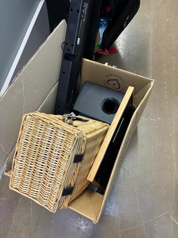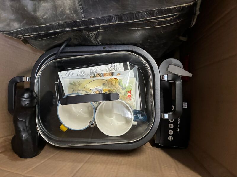 Multiple boxes marked “FRAGILE” (contents mixed)
