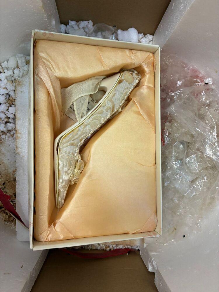 “Sonata Collection – Velvet & Pearl” boxed decorative shoe (cream lace)