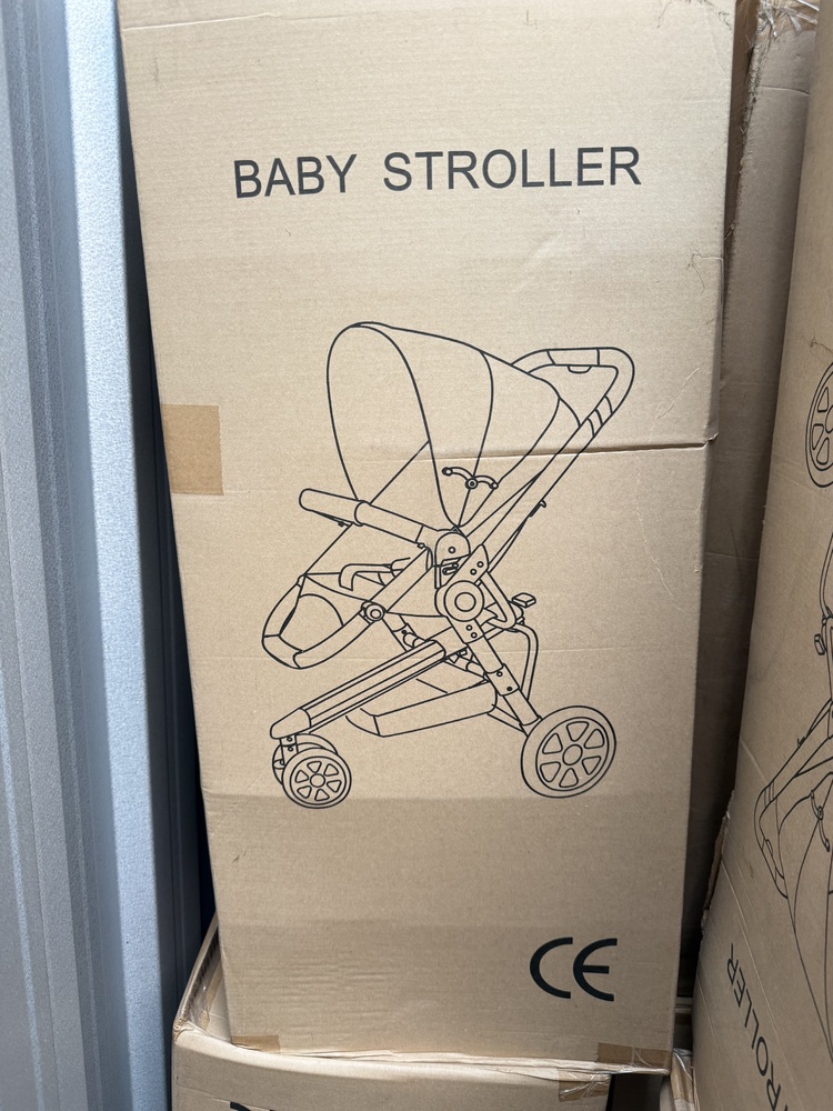 Approx 90 red three wheeled light weight 15.5kg baby strollers all boxed and unopened.
