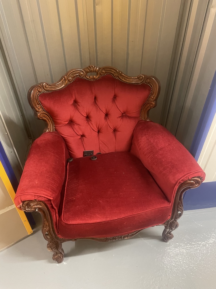 Red velvet material antique wooden armchair