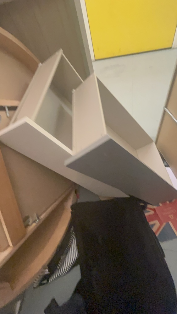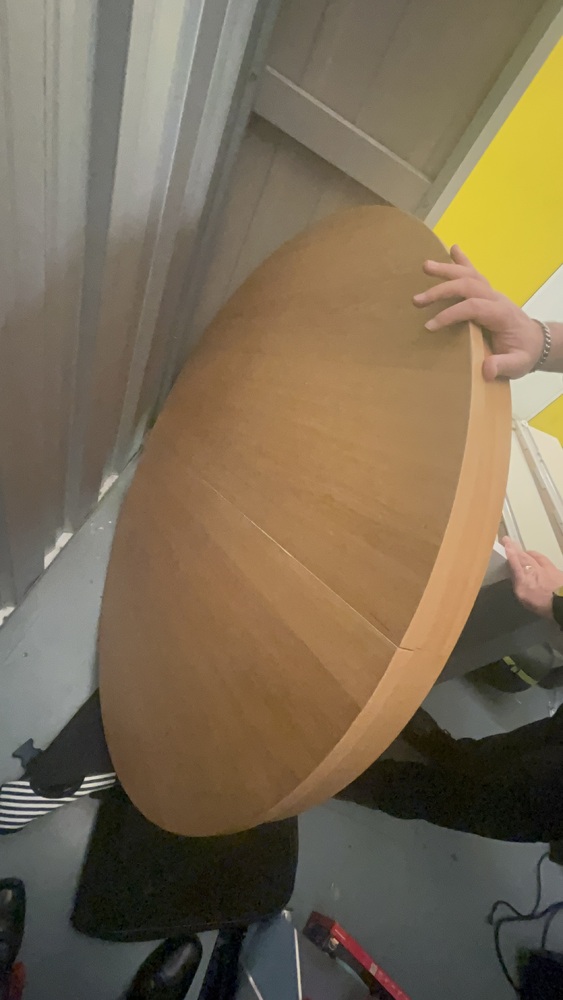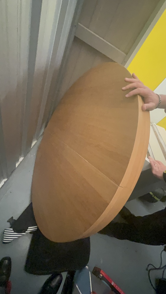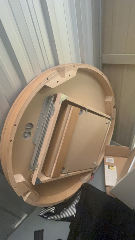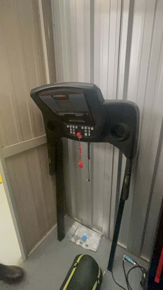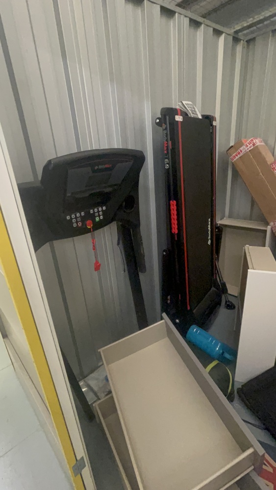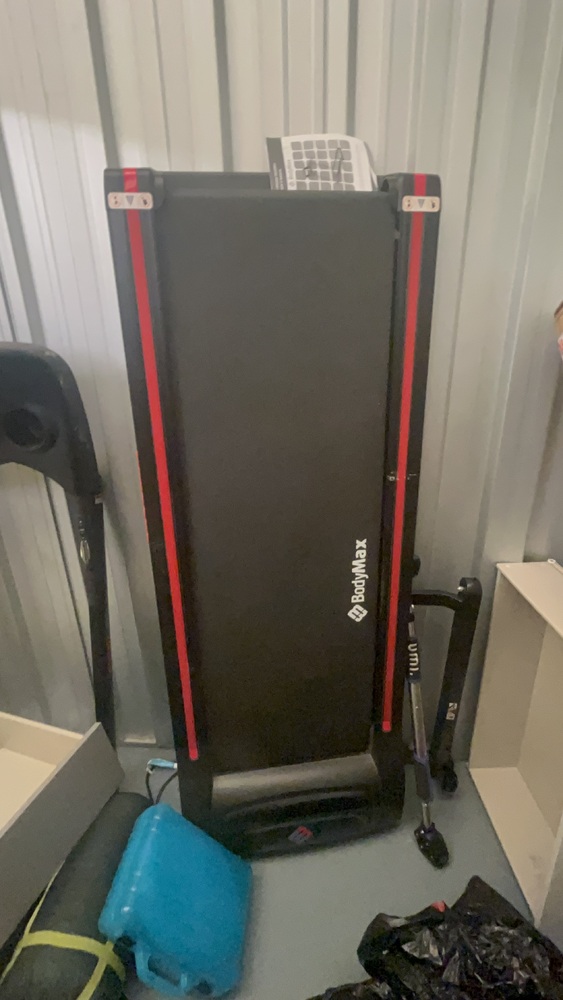 Unit is a domestic unit. It contains a body max running machine. Round extendable table with legs. Also white chairs. Portable sander with battery. Plastic plates case.