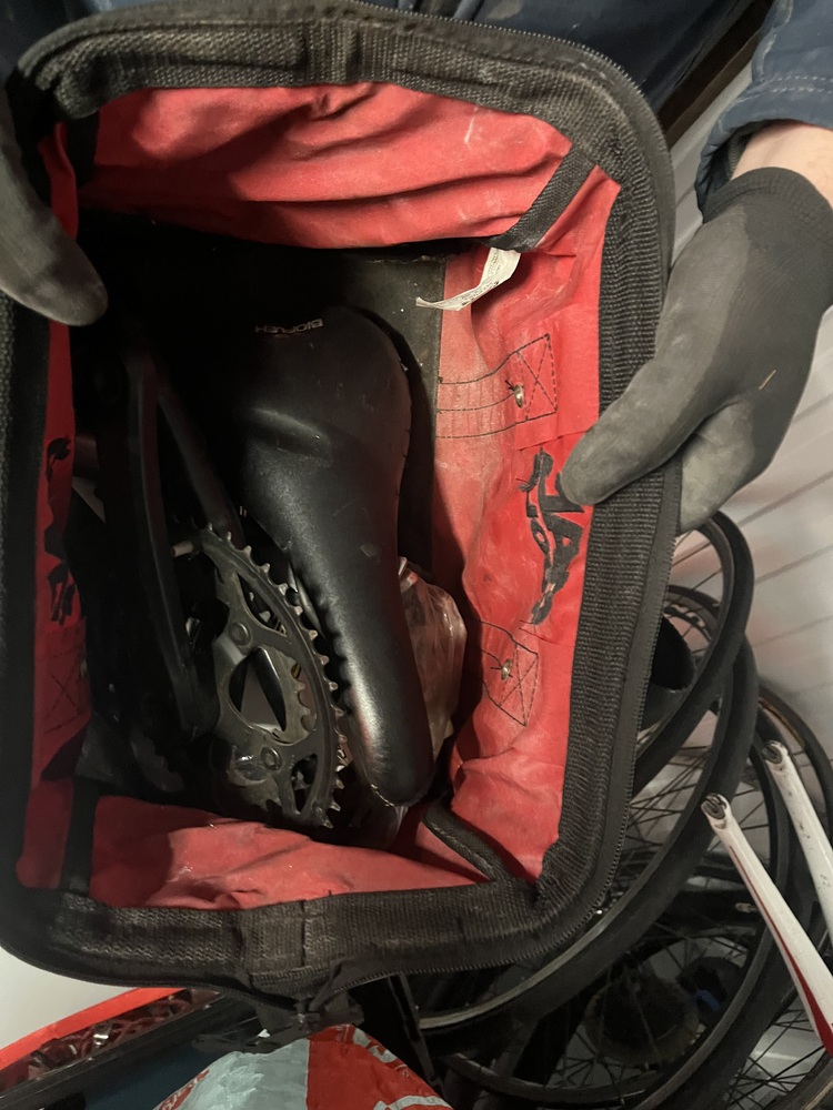 Bag of assorted bike parts – seats, gears, brakes etc.
